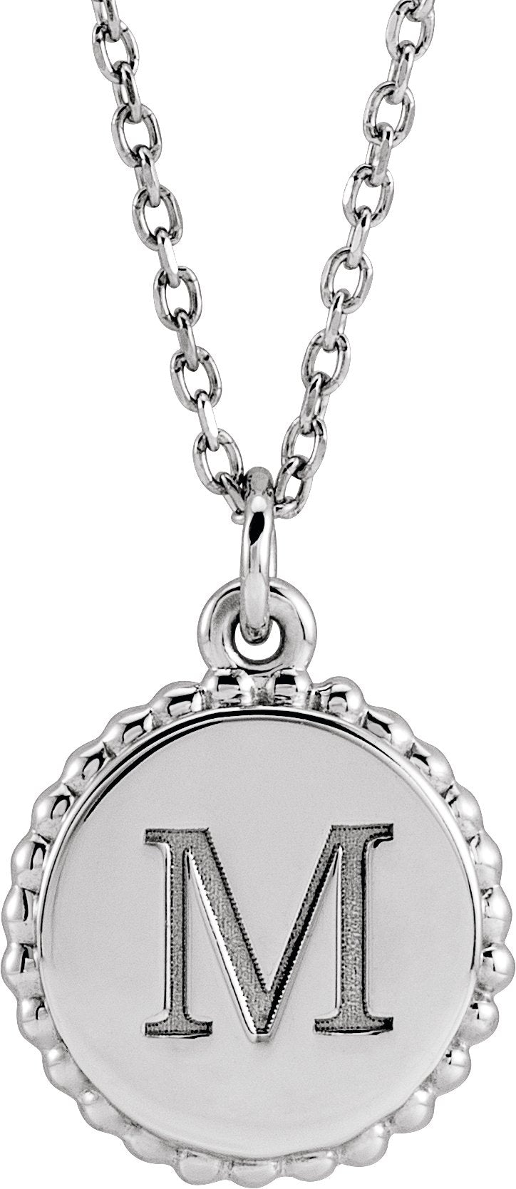 Sterling Silver Engravable Beaded Disc 16-18" Necklace