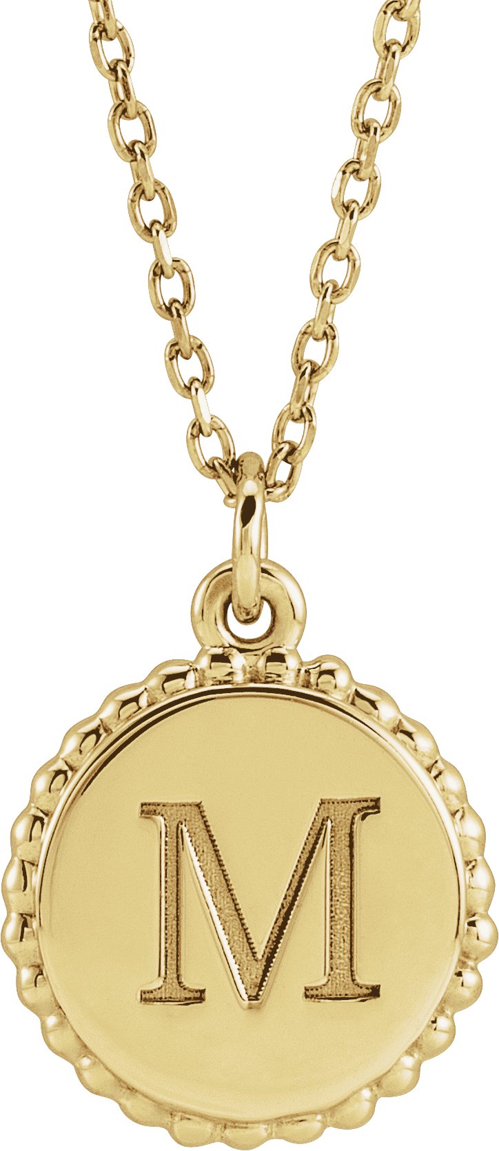 14K Yellow Engravable Beaded Disc 16-18" Necklace