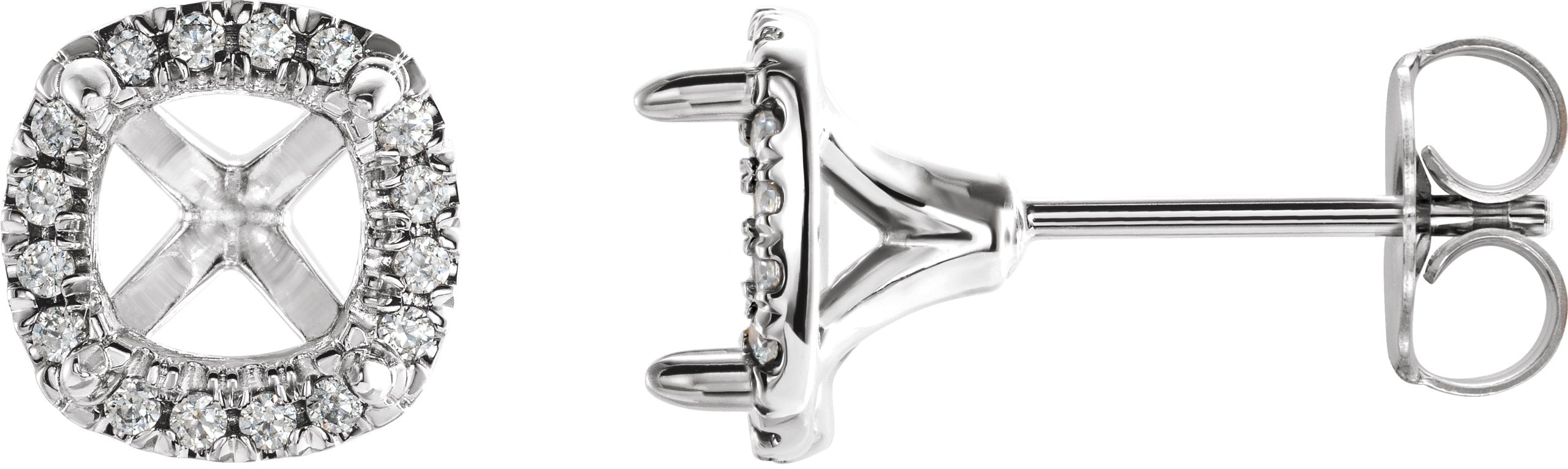 14K White 4x4 mm Square 1/10 CTW Lab-Grown Diamond Semi-Set French-Set Earrings