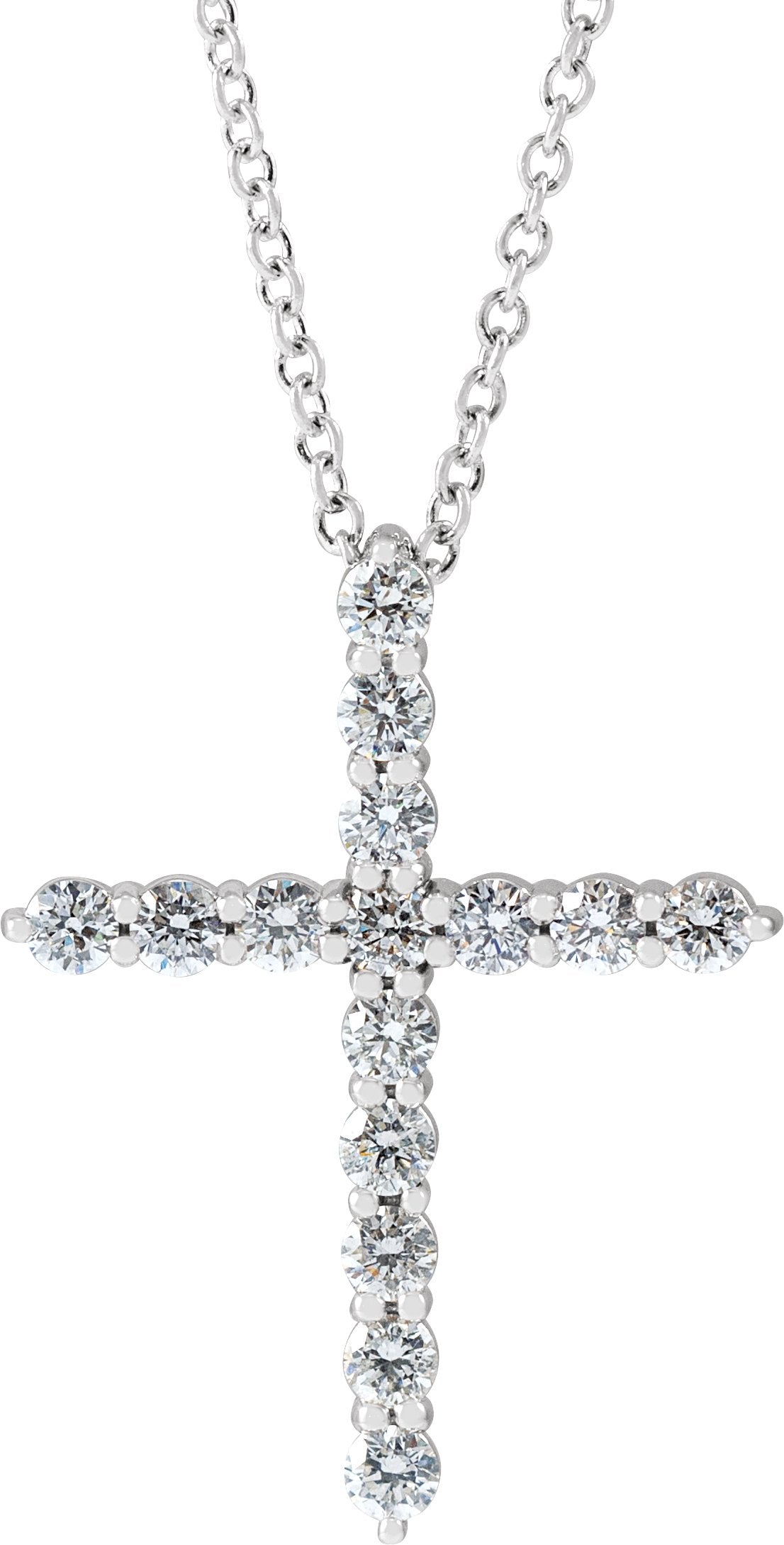 14K White 1/2 CTW Lab-Grown Diamond Cross 16-18" Necklace