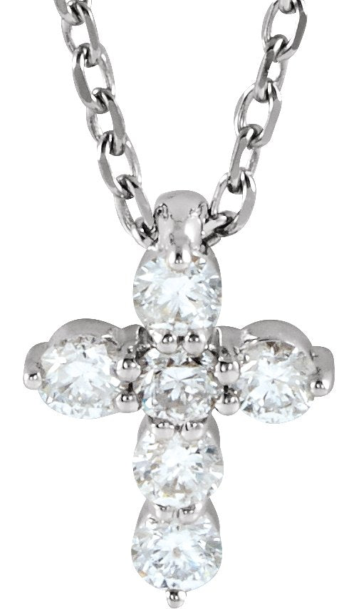 14K White 1/6 CTW Lab-Grown Diamond Cross 16-18" Necklace