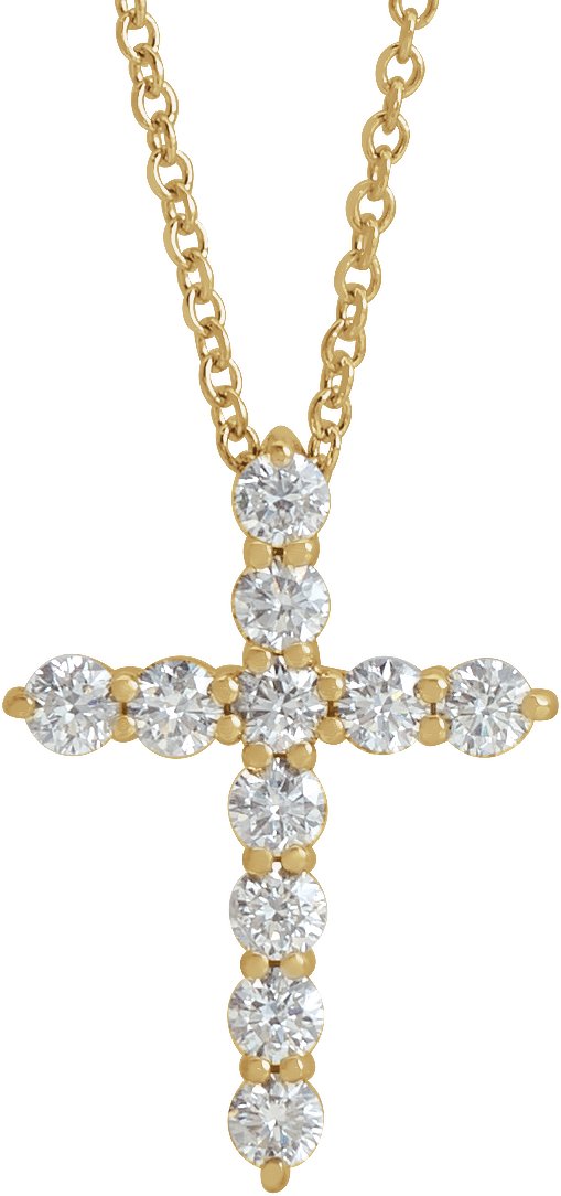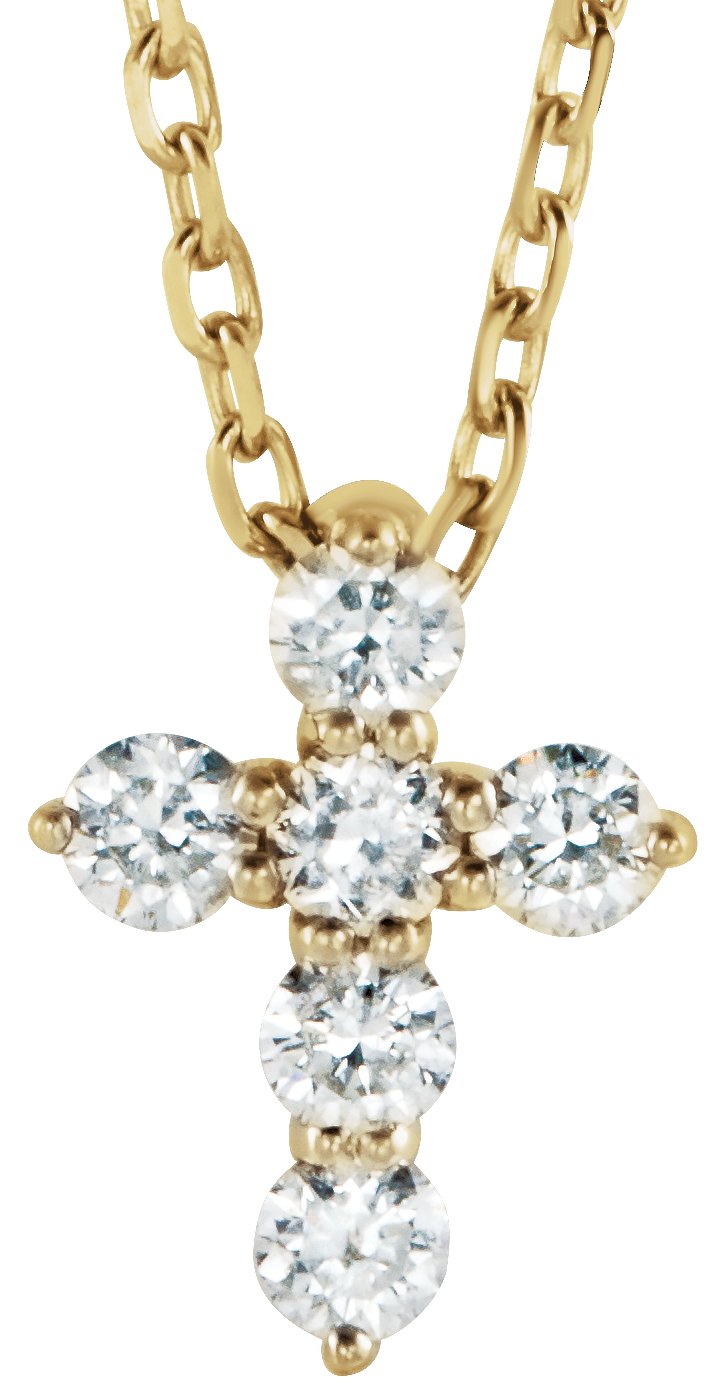 14K Yellow 1/6 CTW Lab-Grown Diamond Cross 16-18" Necklace