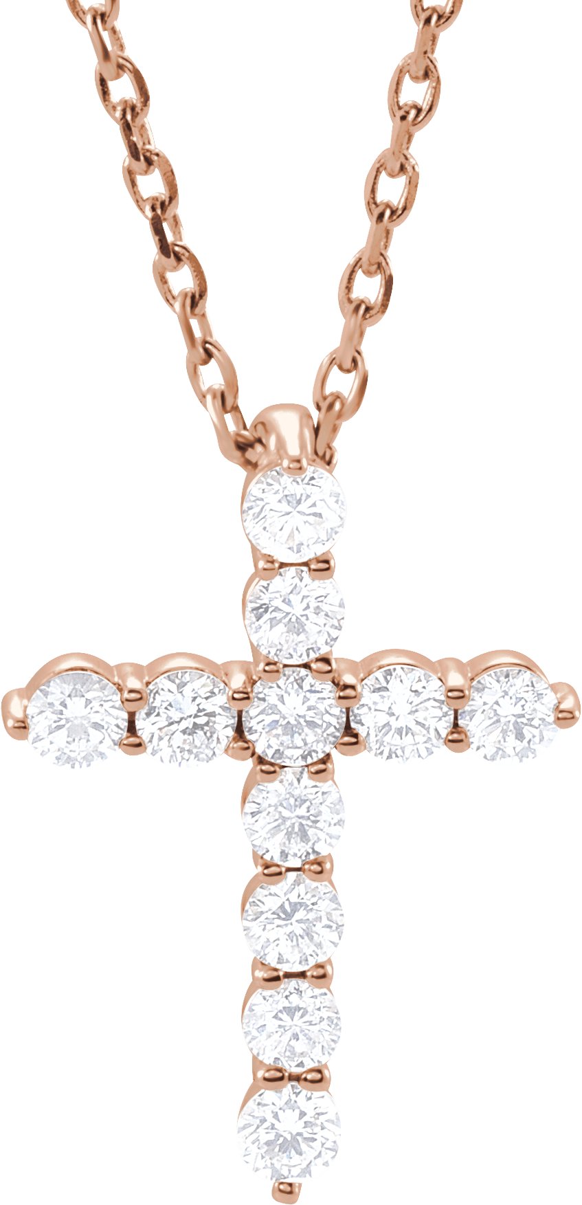 14K Rose 1/4 CTW Lab-Grown Diamond Cross 16-18" Necklace