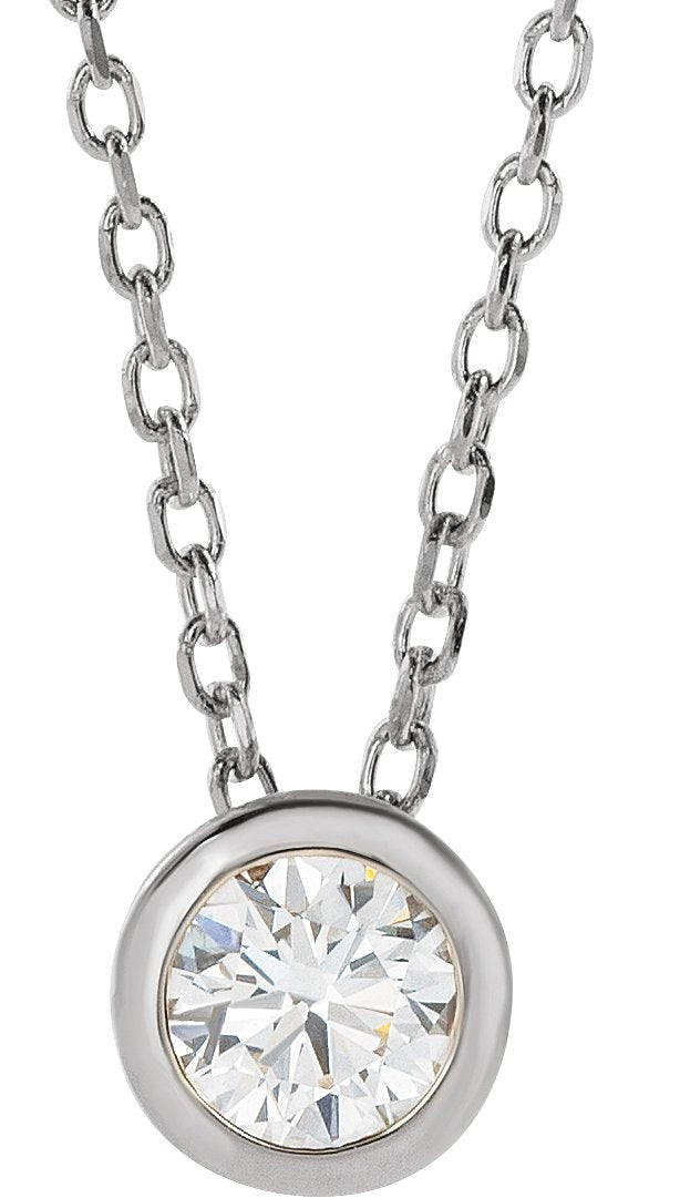 14K White 1/4 CT Lab-Grown Diamond Bezel-Set 16-18" Necklace