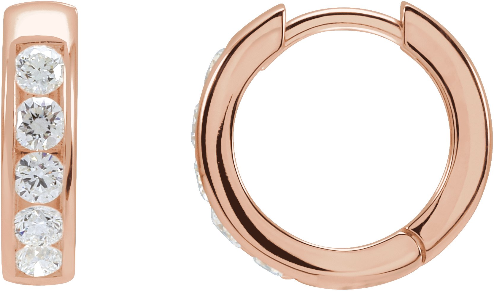 14K Rose 5/8 CTW Lab-Grown Diamond 14 mm Hinged Hoop Earrings