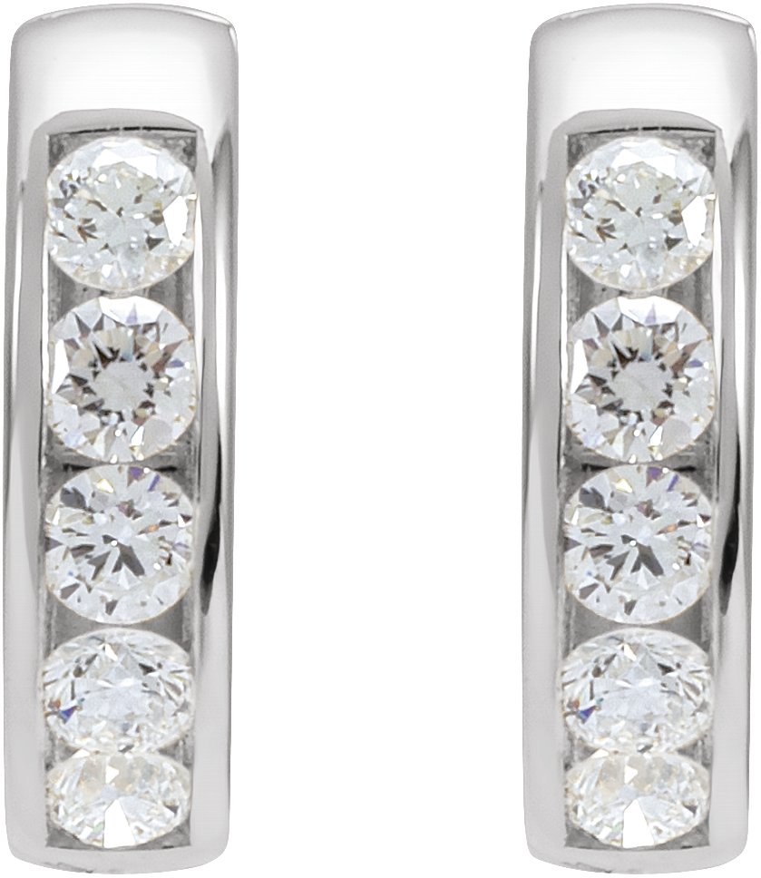 14K White 5/8 CTW Lab-Grown Diamond 14 mm Hinged Hoop Earrings