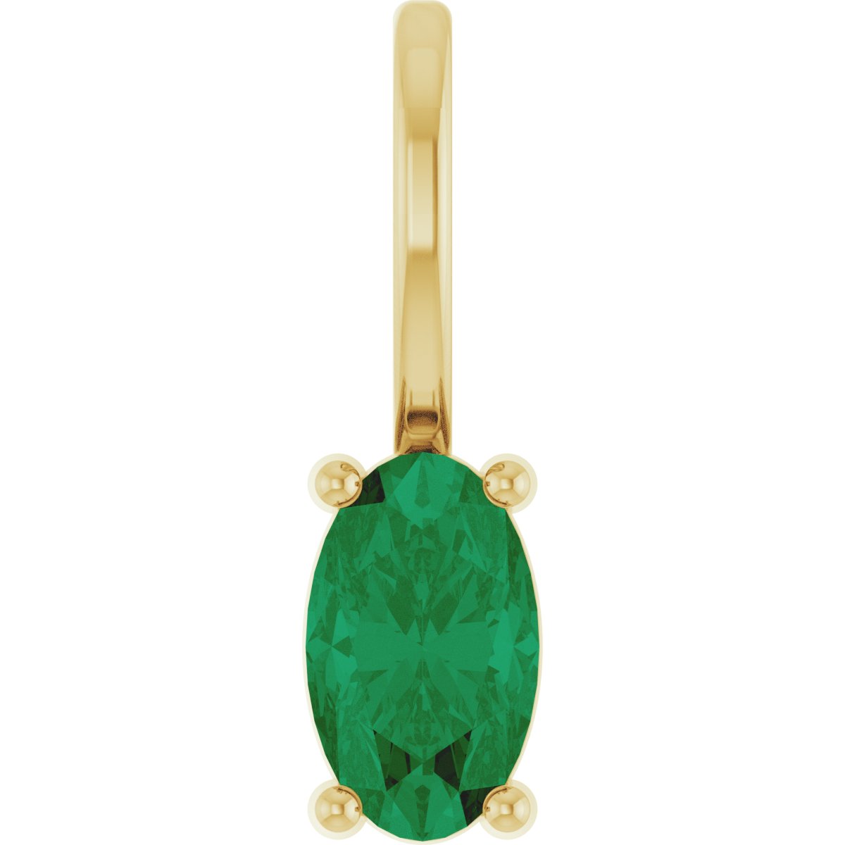 14K Yellow 5x3 mm Lab-Grown Emerald Charm/Pendant