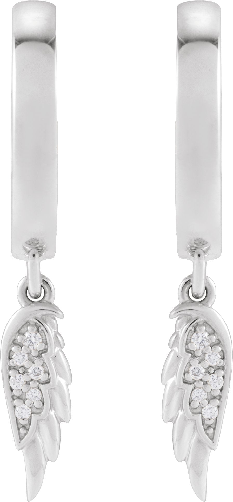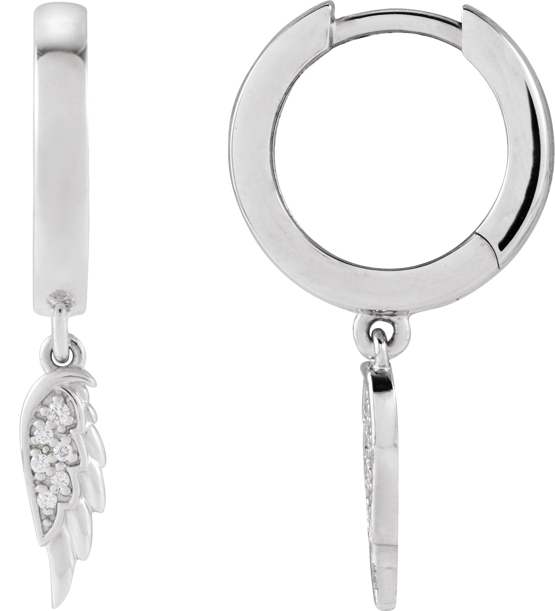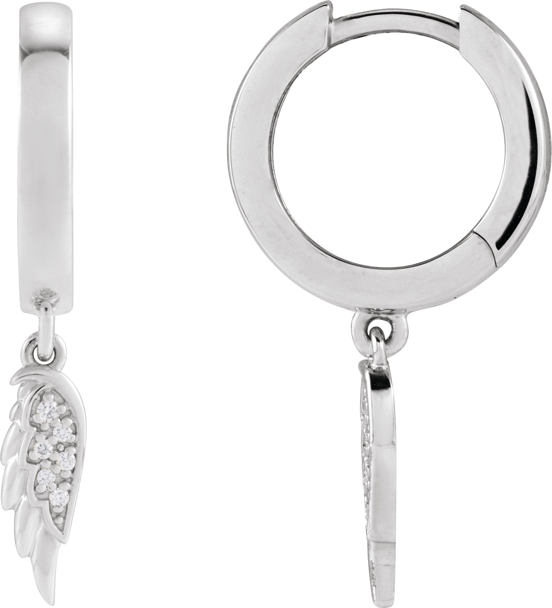 14K White .03 CTW Natural Diamond Angel Wing Hinged Hoop Earrings