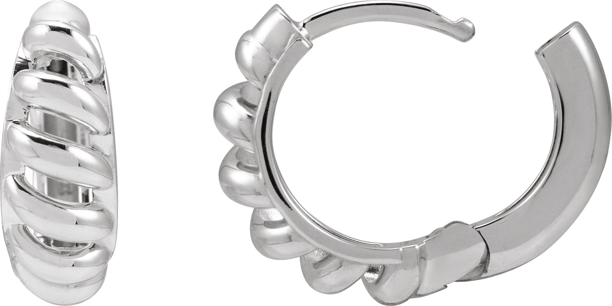 Sterling Silver Left Rope Dome 12.9 mm Hoop Earring