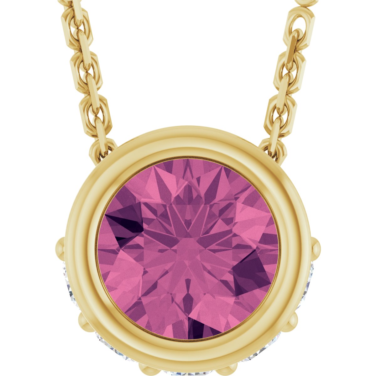 14K Yellow Natural Pink Tourmaline & .07 CTW Natural Diamond 18" Necklace