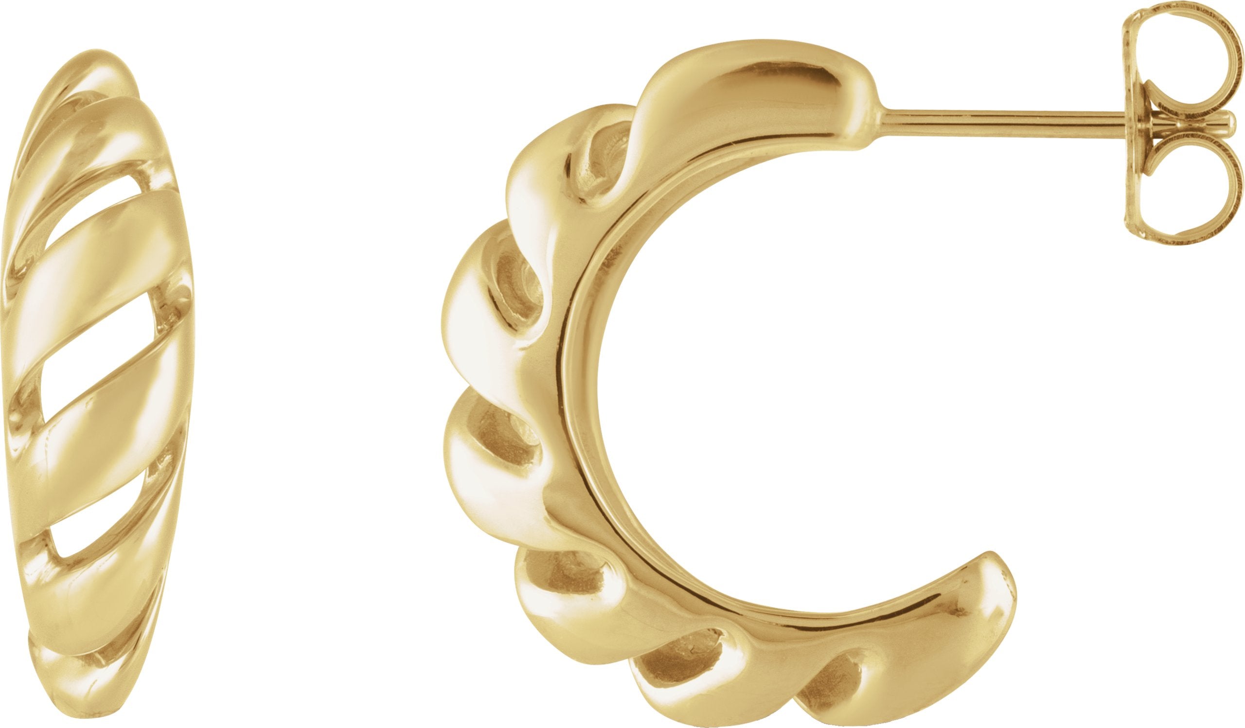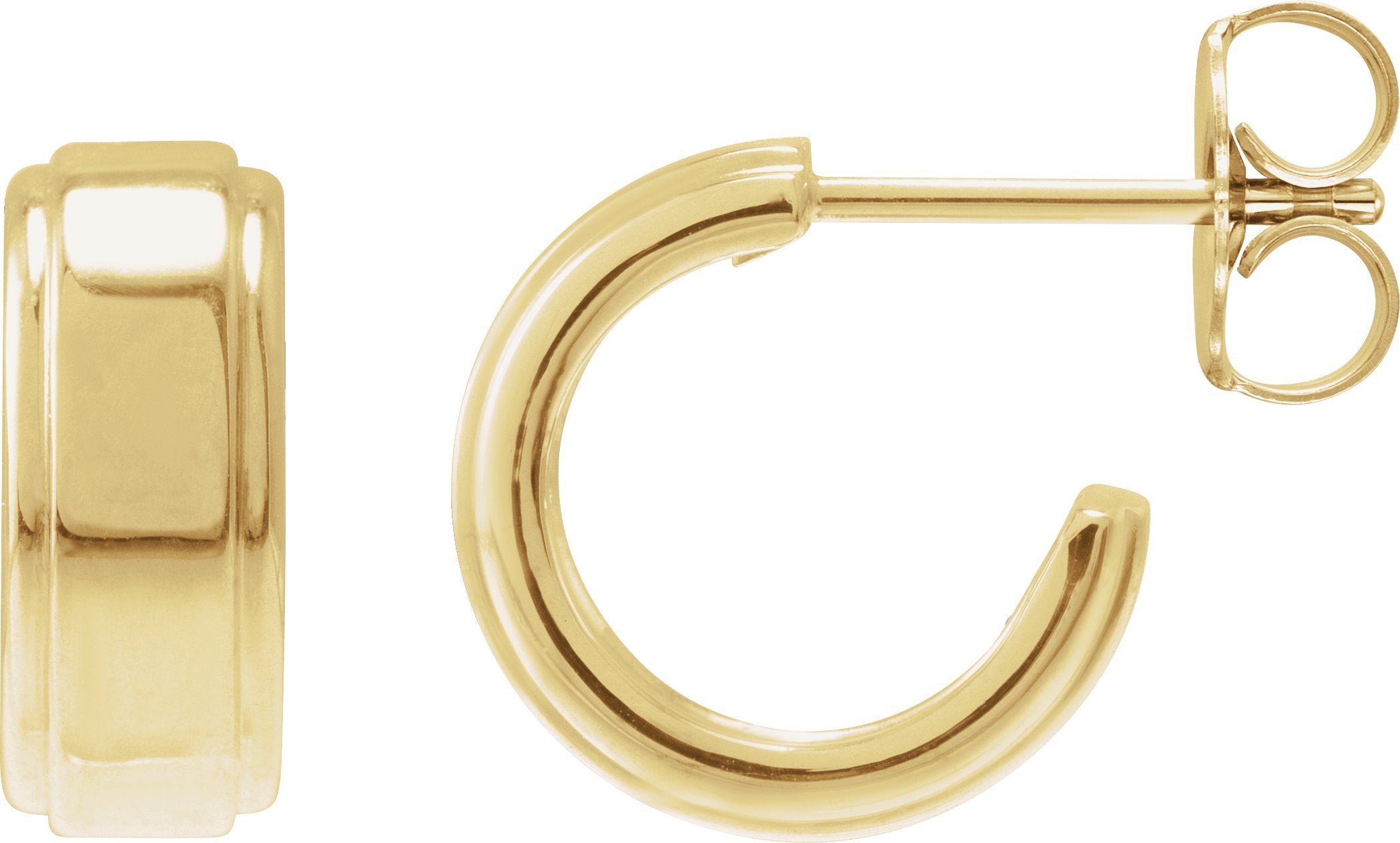 14K Yellow Stepped-Edge 11.4 mm Hoop Earrings