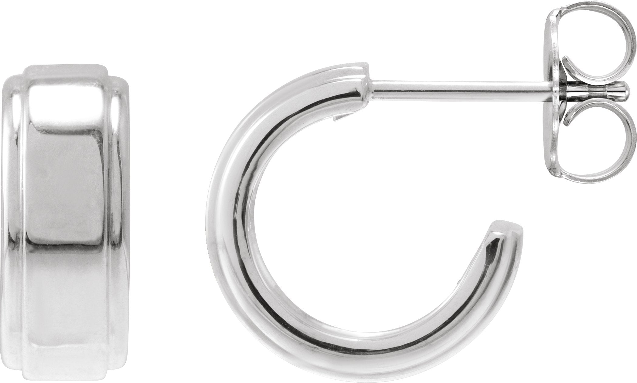Platinum Stepped-Edge 11.4 mm Hoop Earrings