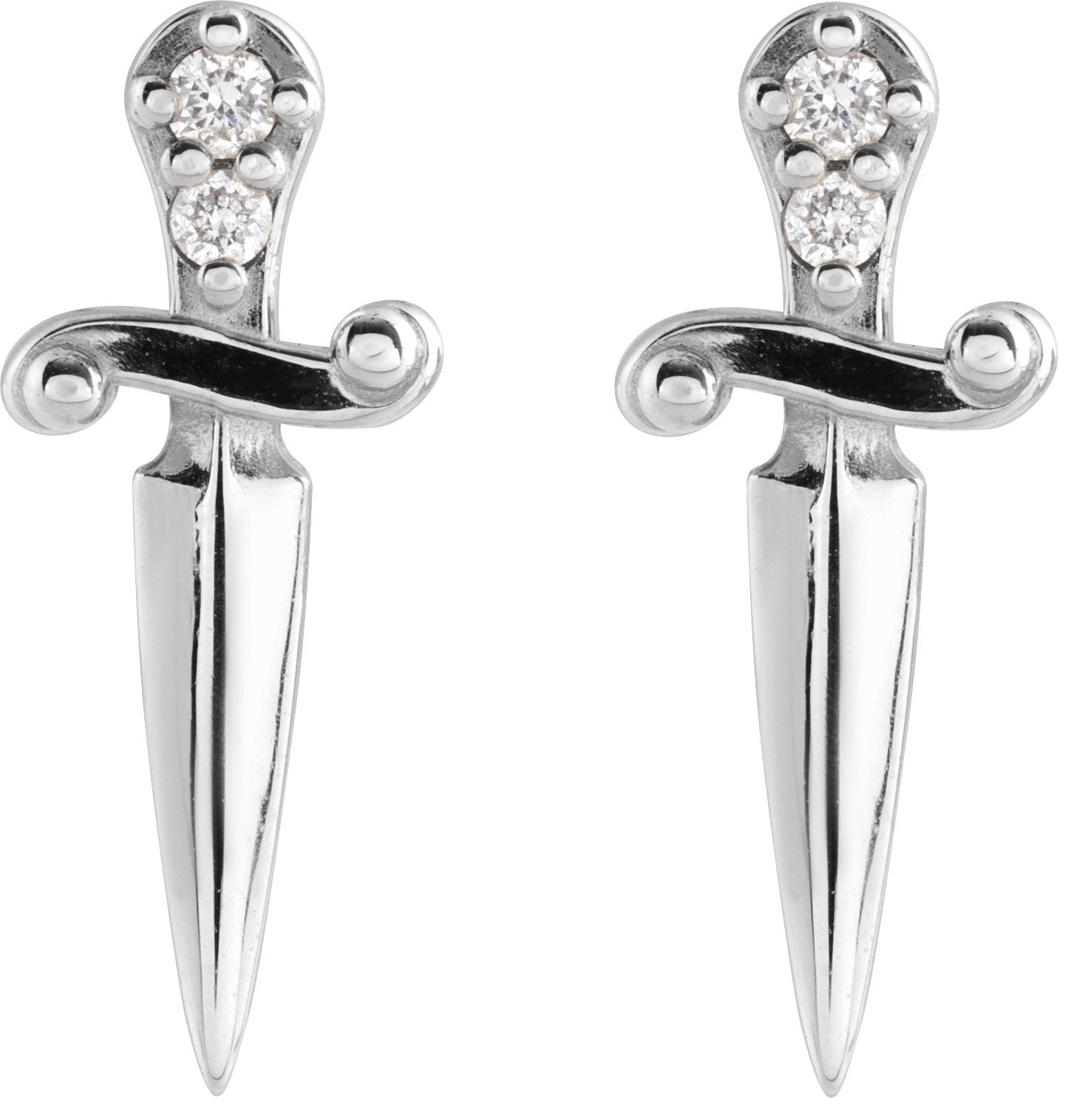 14K White .025 CTW Natural Diamond Dagger Earrings