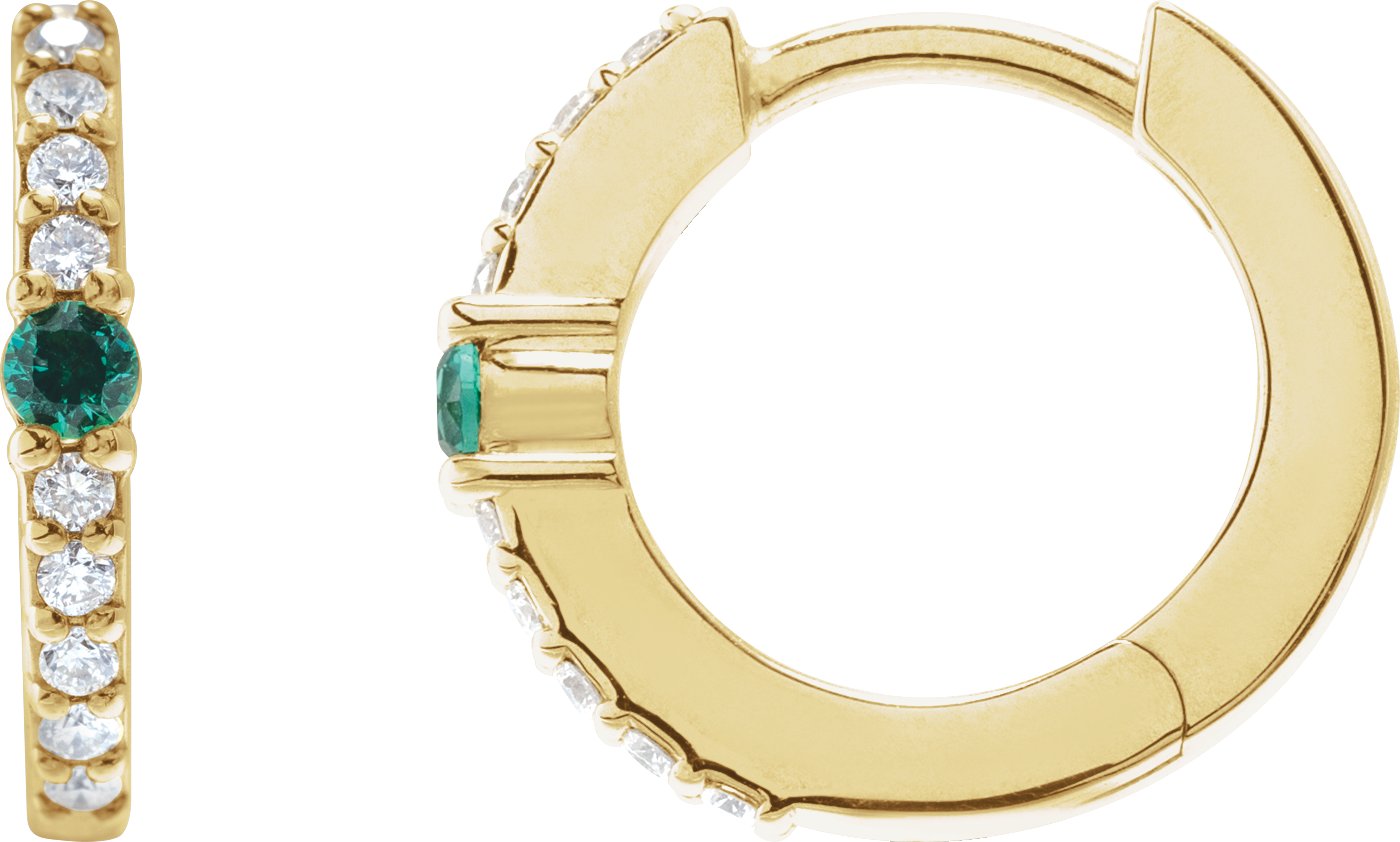 14K Yellow Natural Emerald & 1/8 CTW Natural Diamond 13.6 mm Hoop Earring