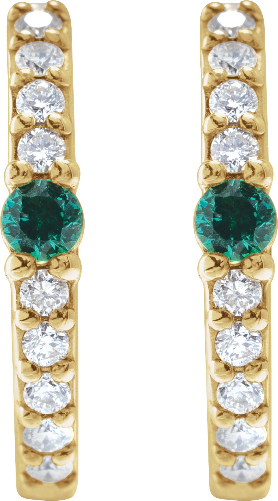 14K Yellow Lab-Grown Emerald & 1/8 CTW Natural Diamond 13.6 mm Hoop Earring