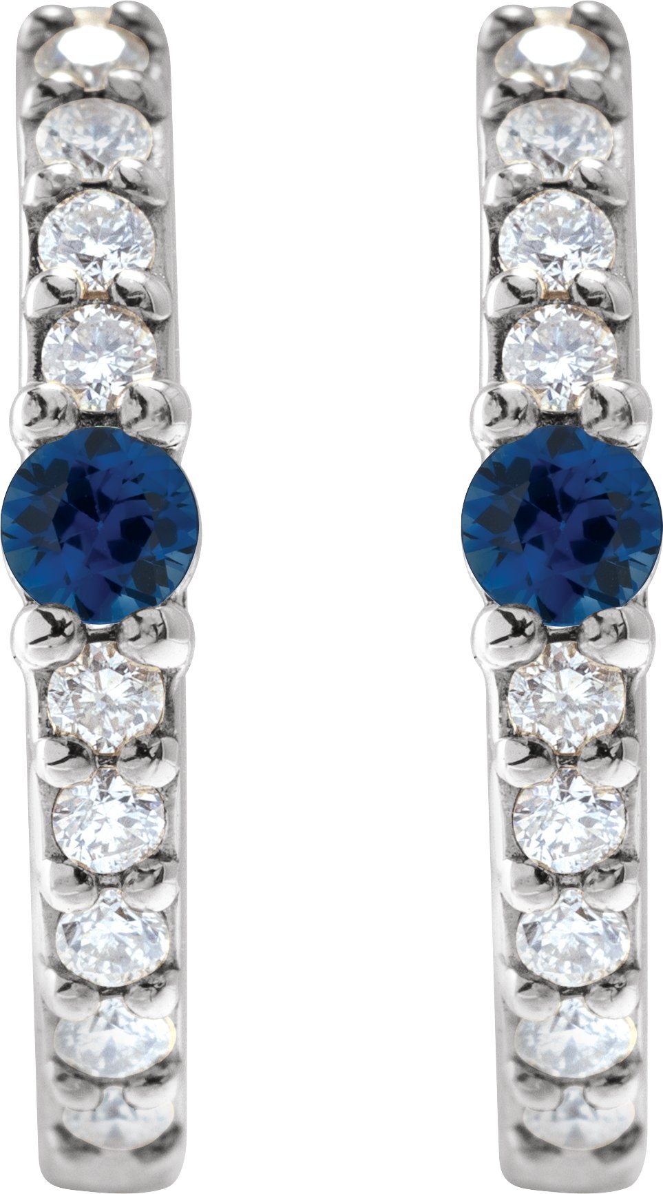14K White Lab-Grown Blue Sapphire & 1/8 CTW Natural Diamond 13.6 mm Hoop Earring