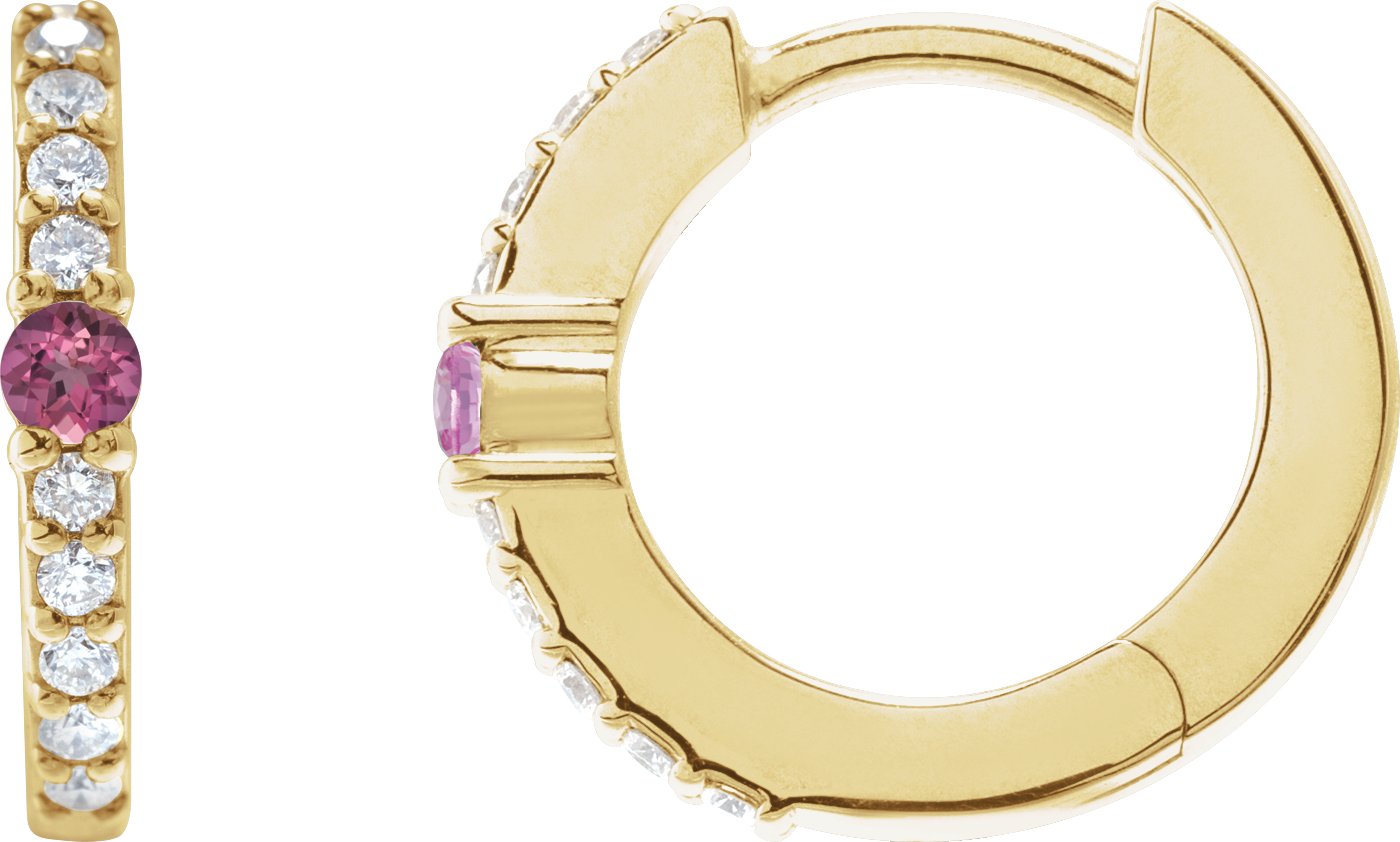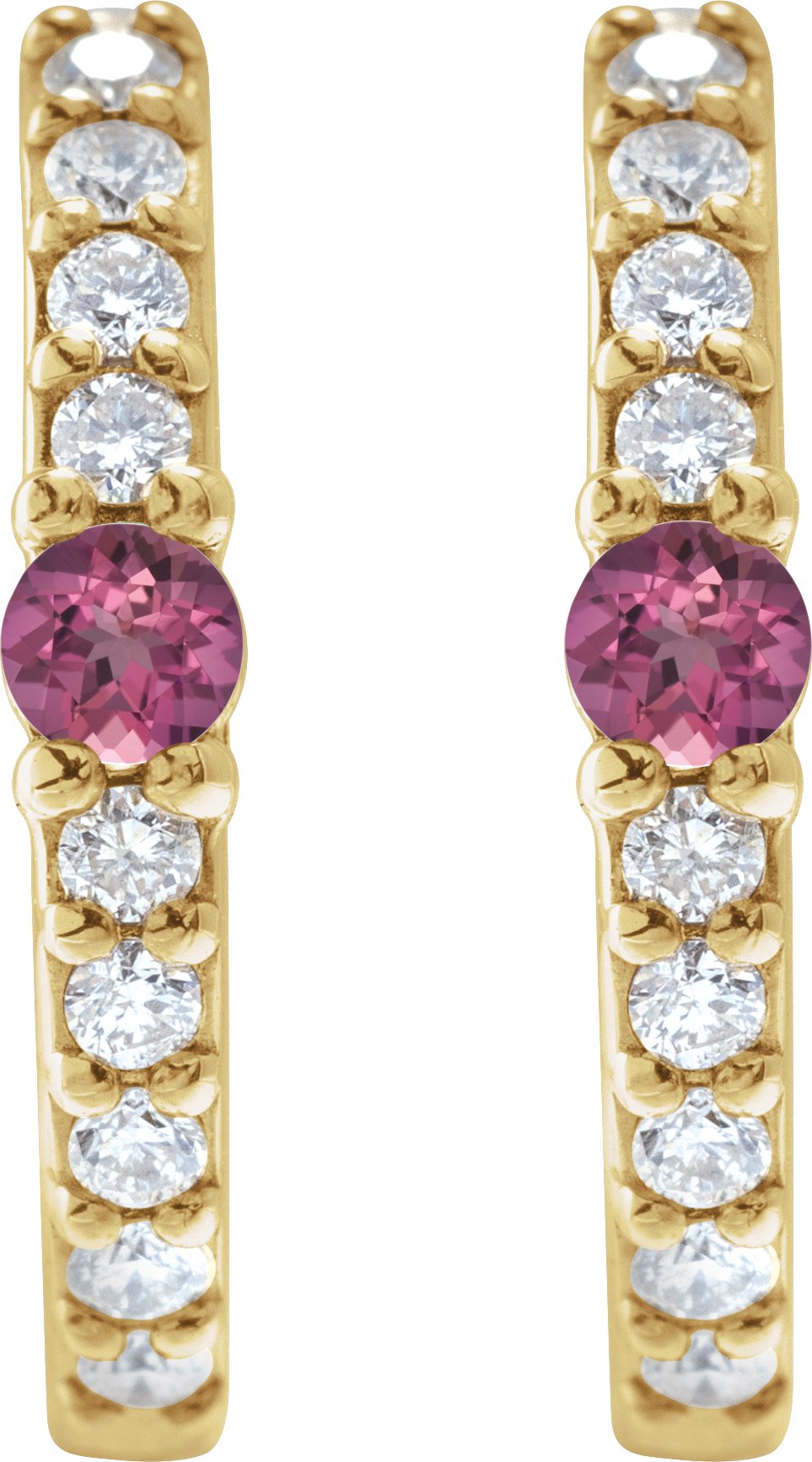 14K Yellow Natural Pink Tourmaline & 1/8 CTW Natural Diamond 13.6 mm Hoop Earring