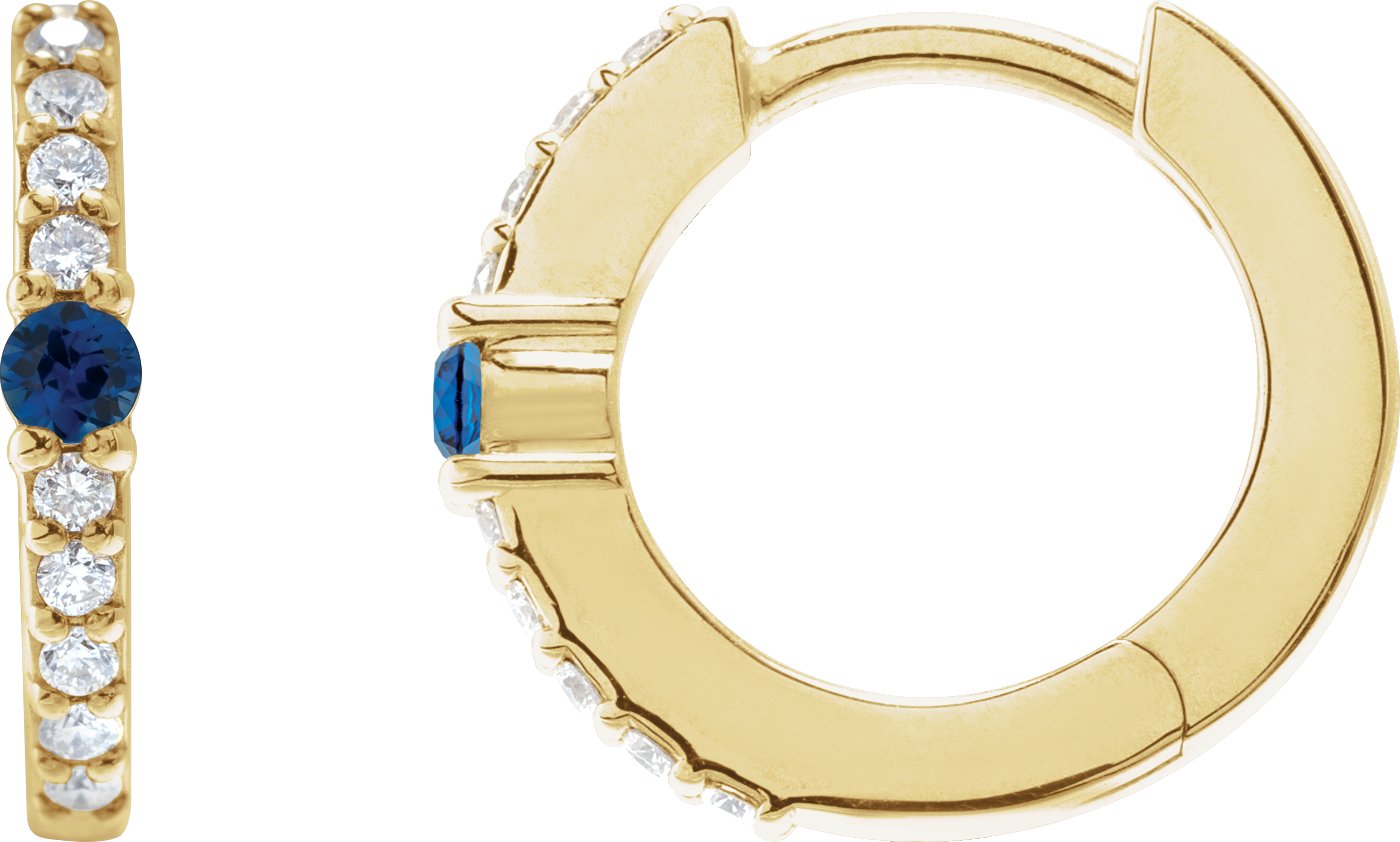 14K Yellow Lab-Grown Blue Sapphire & 1/8 CTW Natural Diamond 13.6 mm Hoop Earring