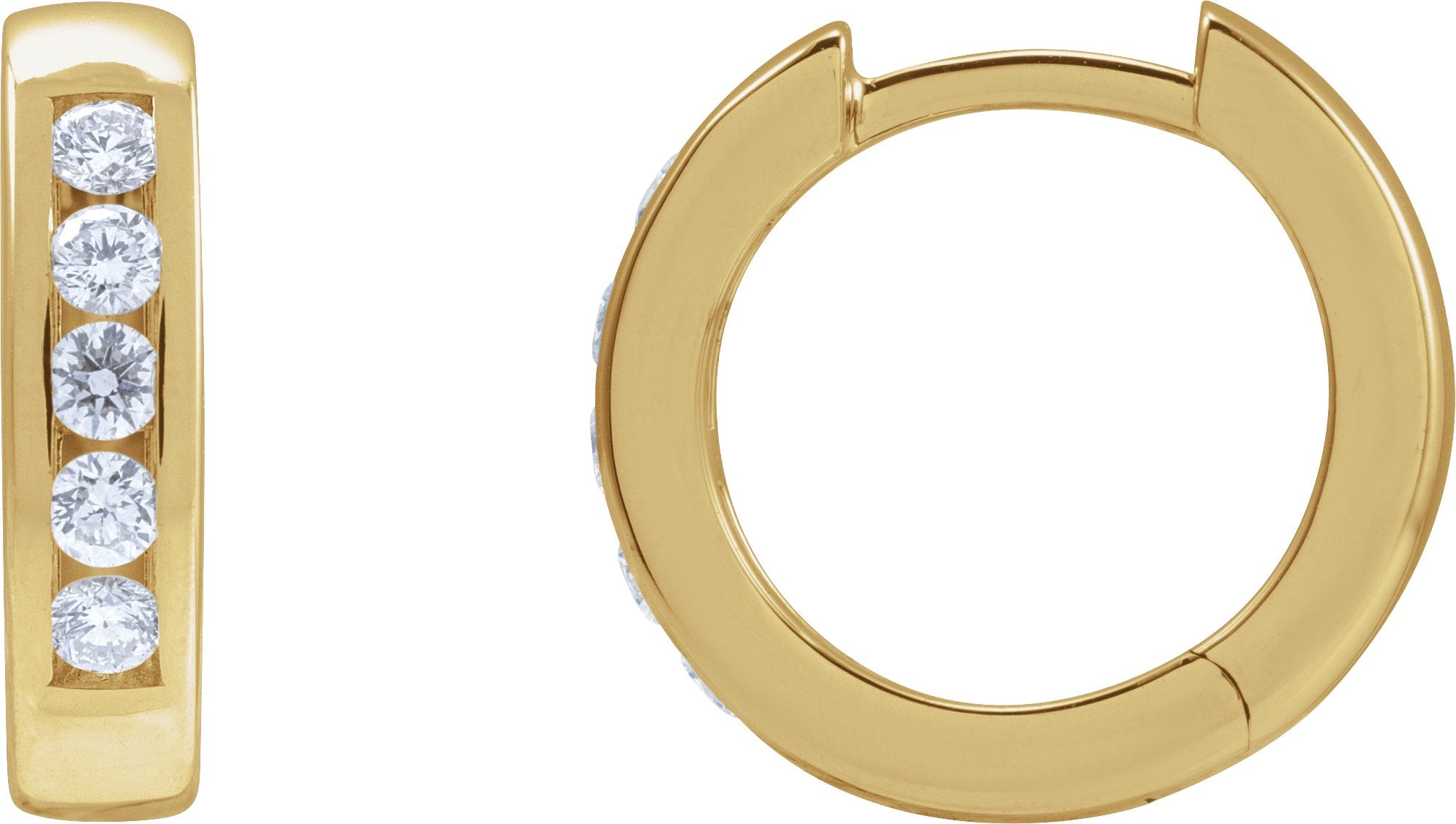 14K Yellow 1/3 CTW Natural Diamond 14 mm Hinged Hoop Earrings