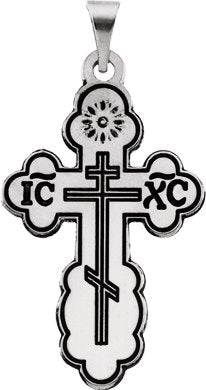 Sterling Silver Orthodox Cross Pendant with Black Inlay without Packaging