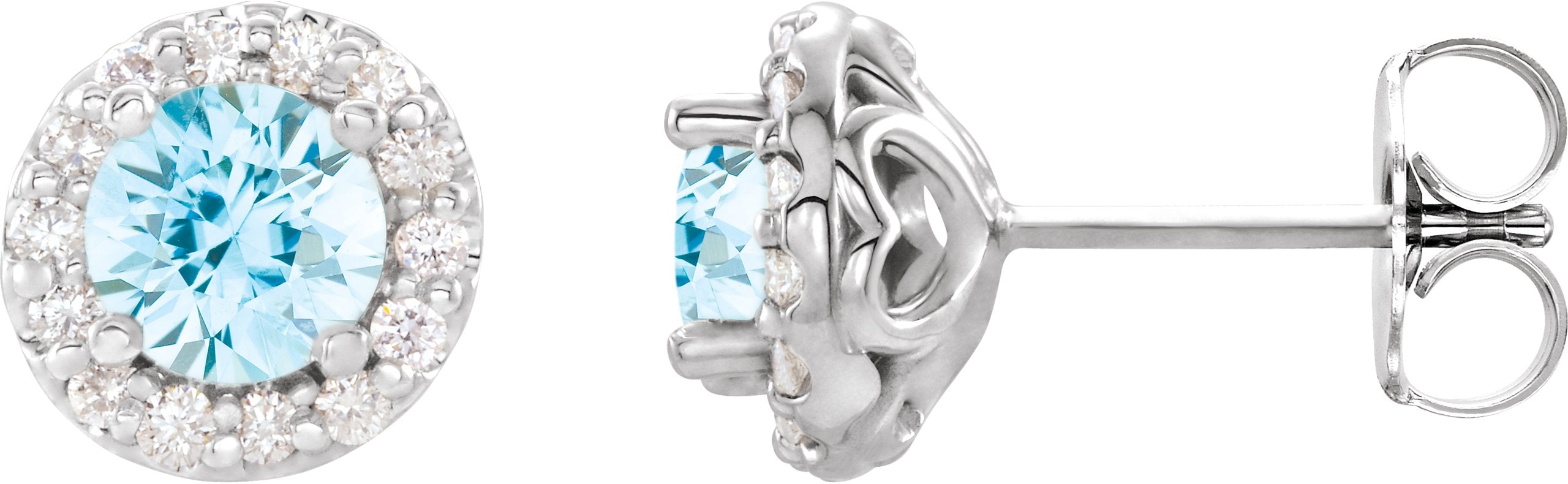 14K White 6 mm Natural Aquamarine & 1/4 CTW Natural Diamond Earrings