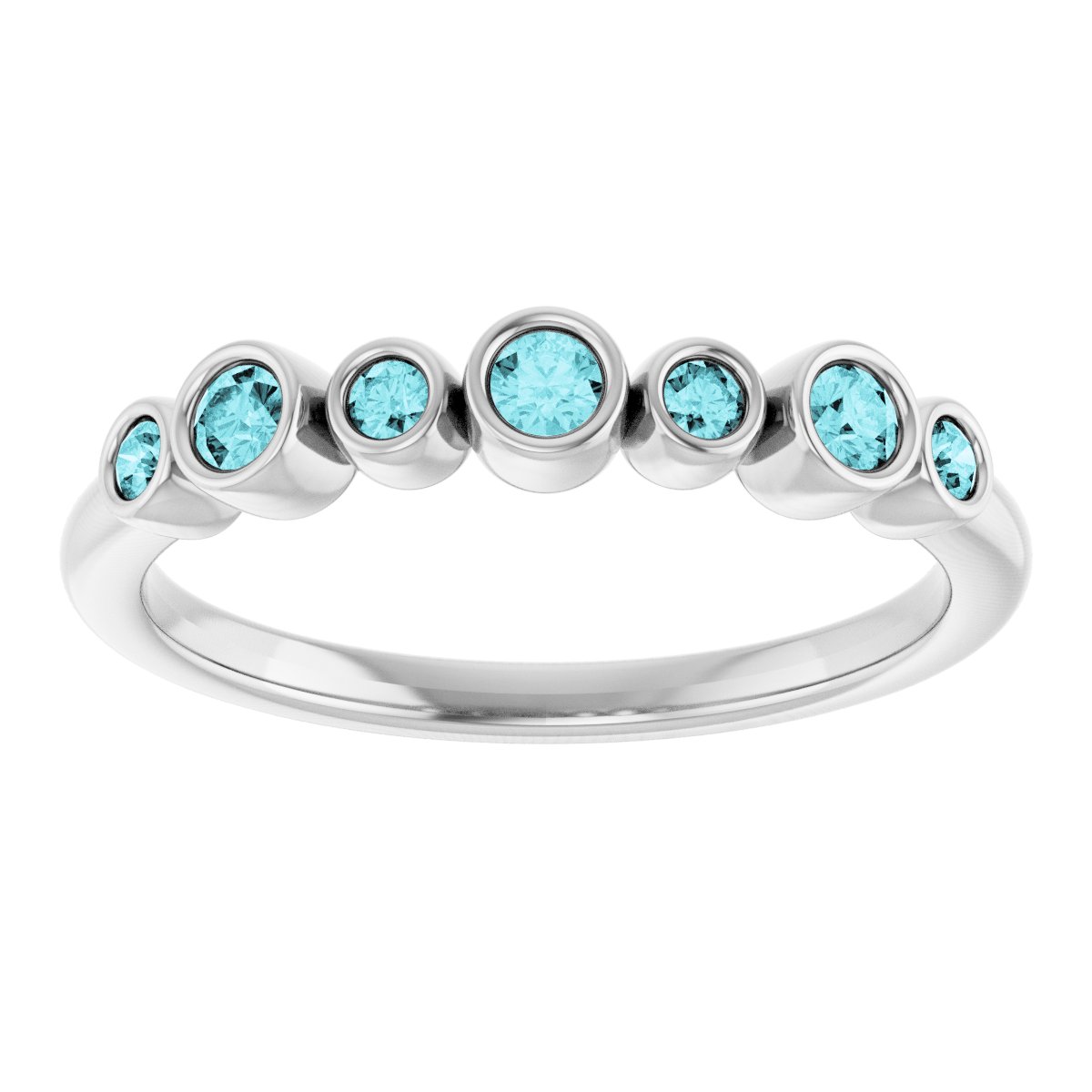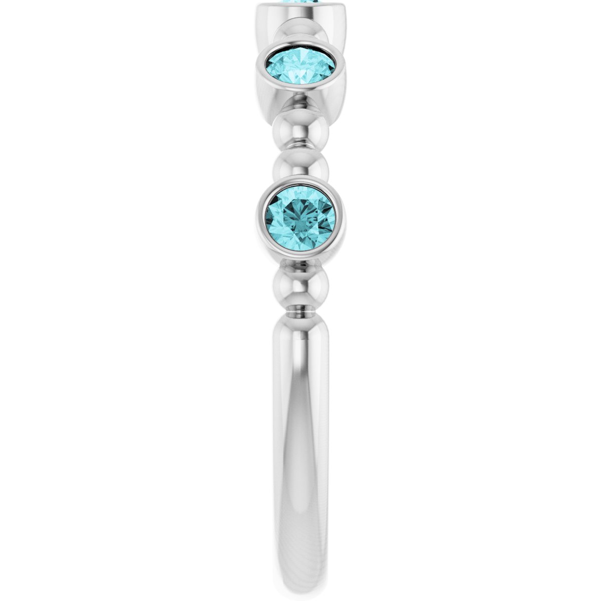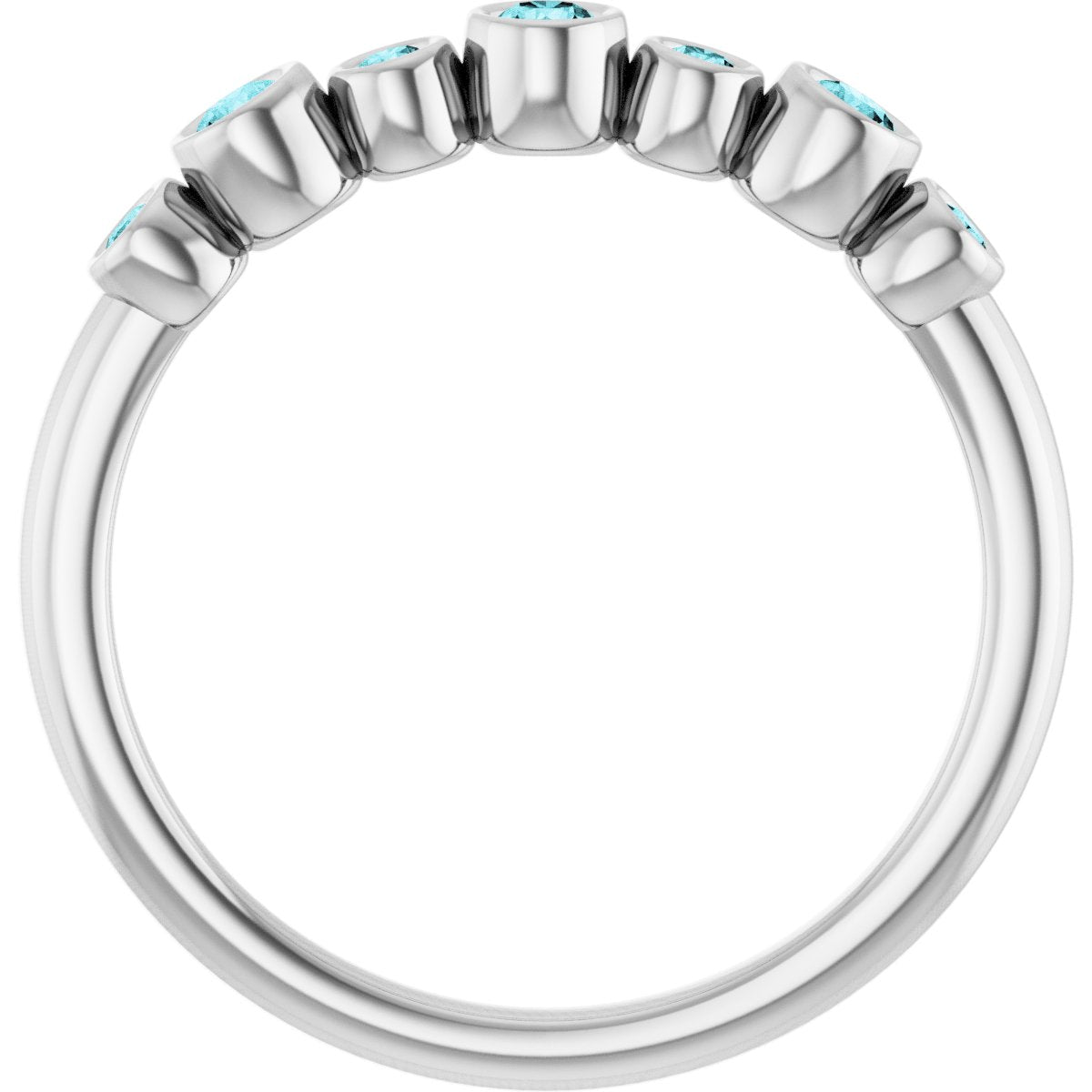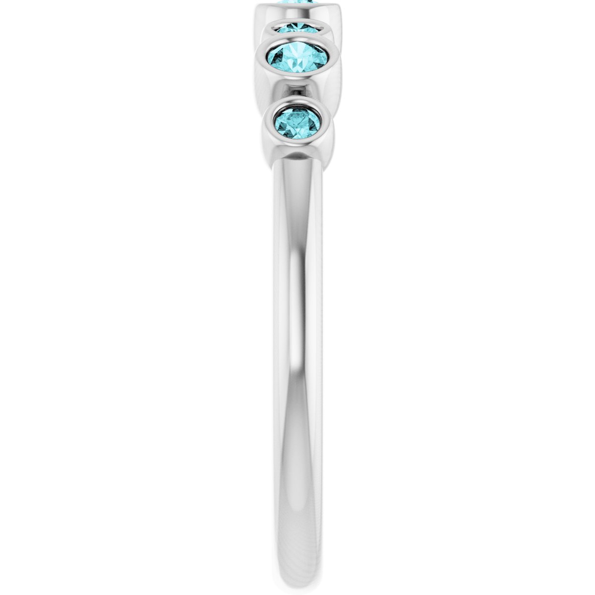 14K White Natural Blue Zircon Bezel-Set Bar Ring