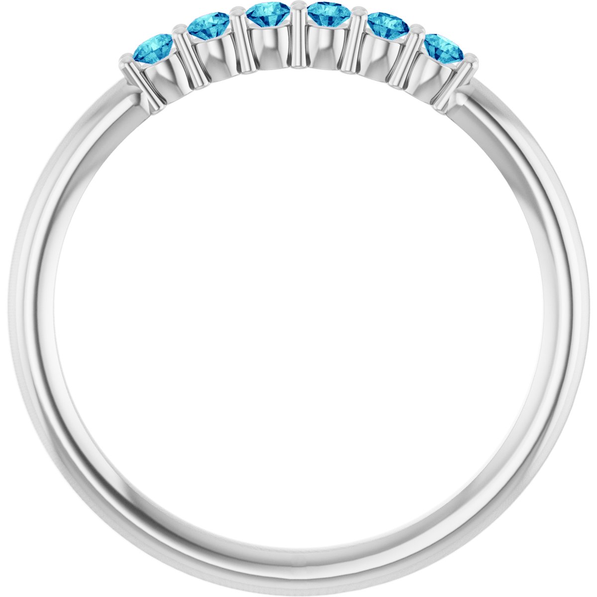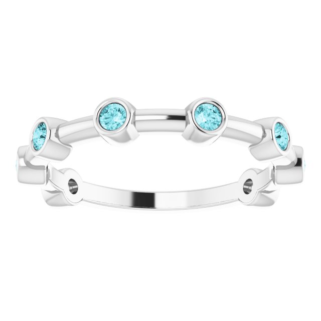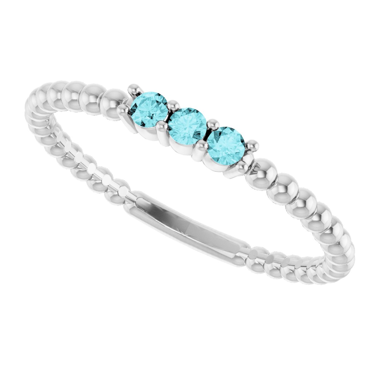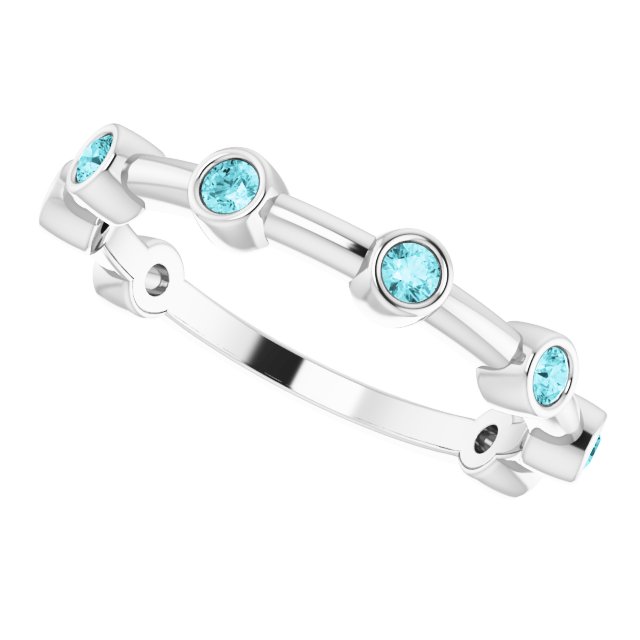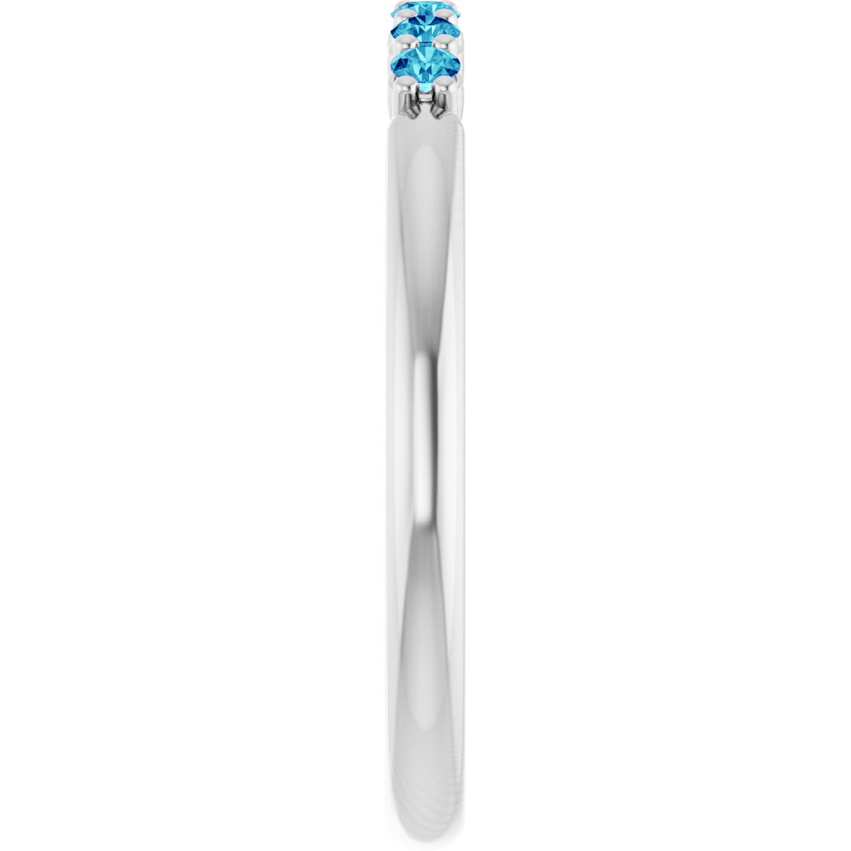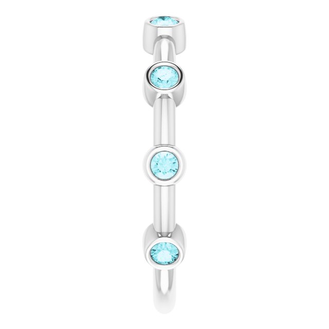 14K White Natural Blue Zircon Bezel-Set Bar Ring