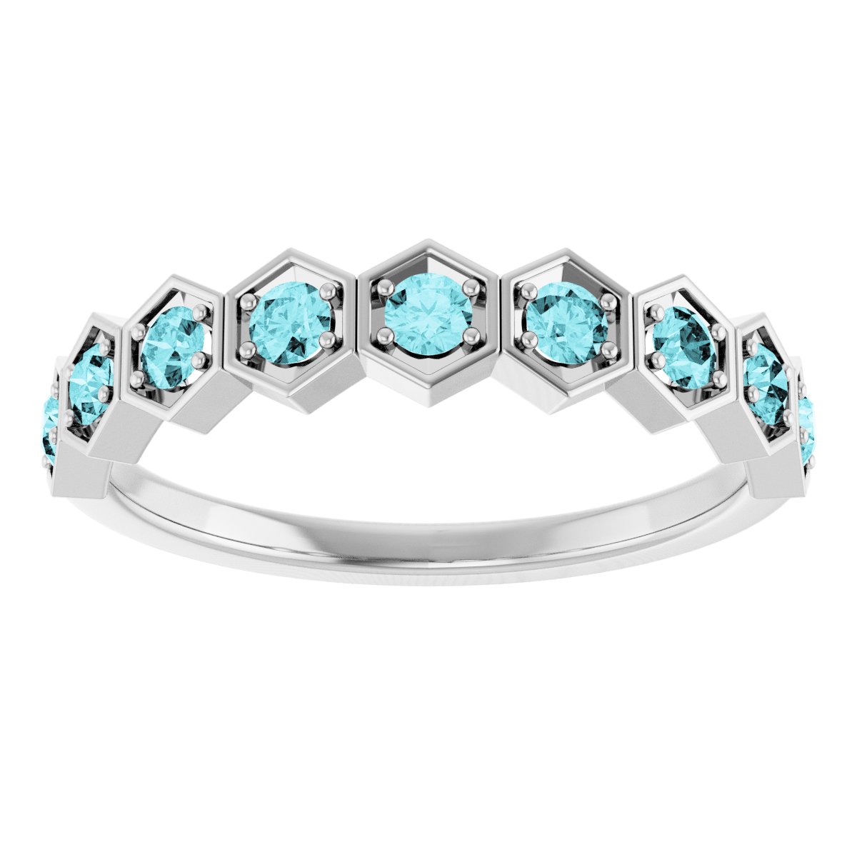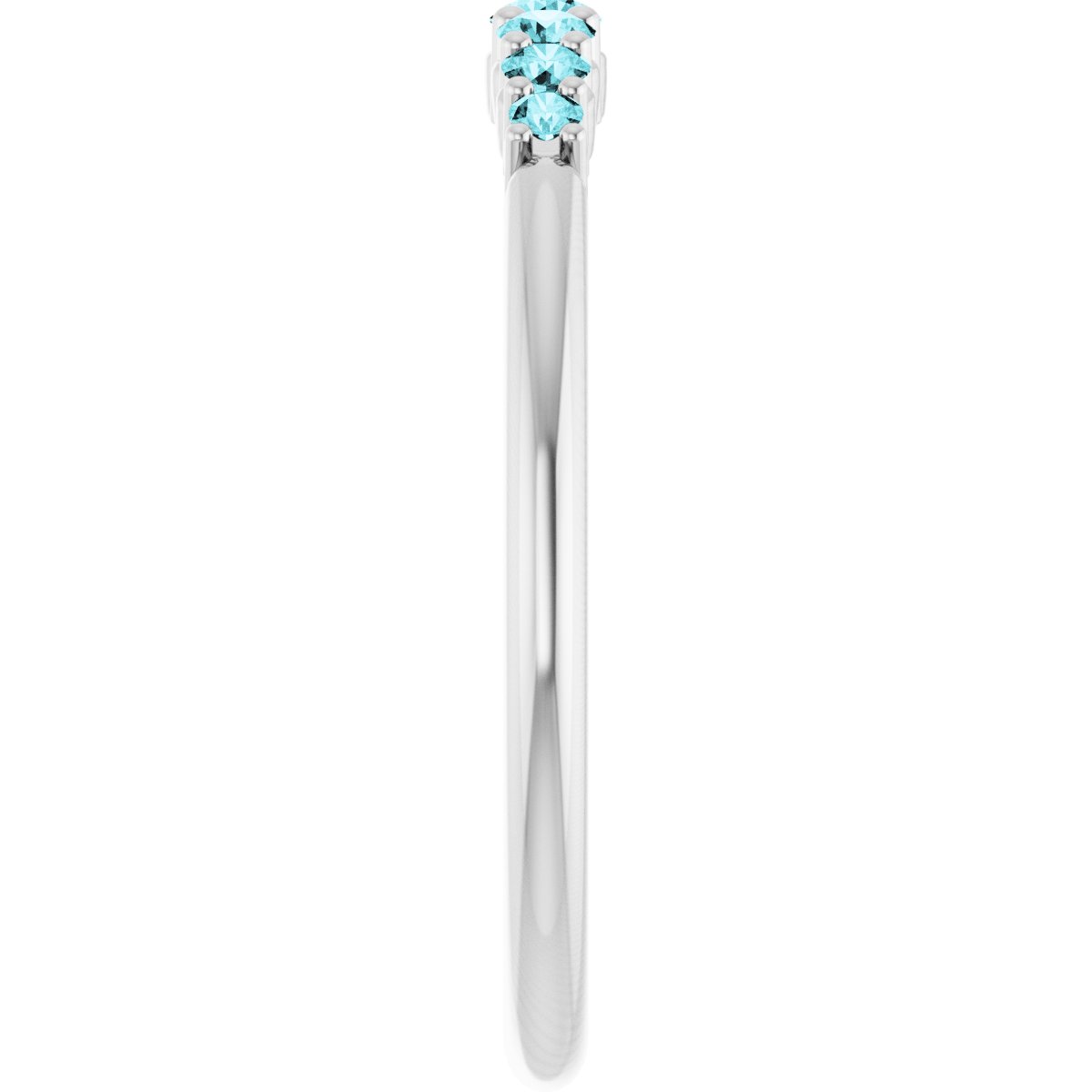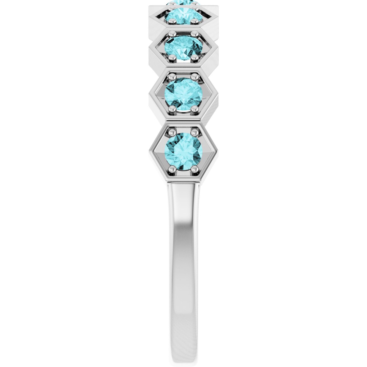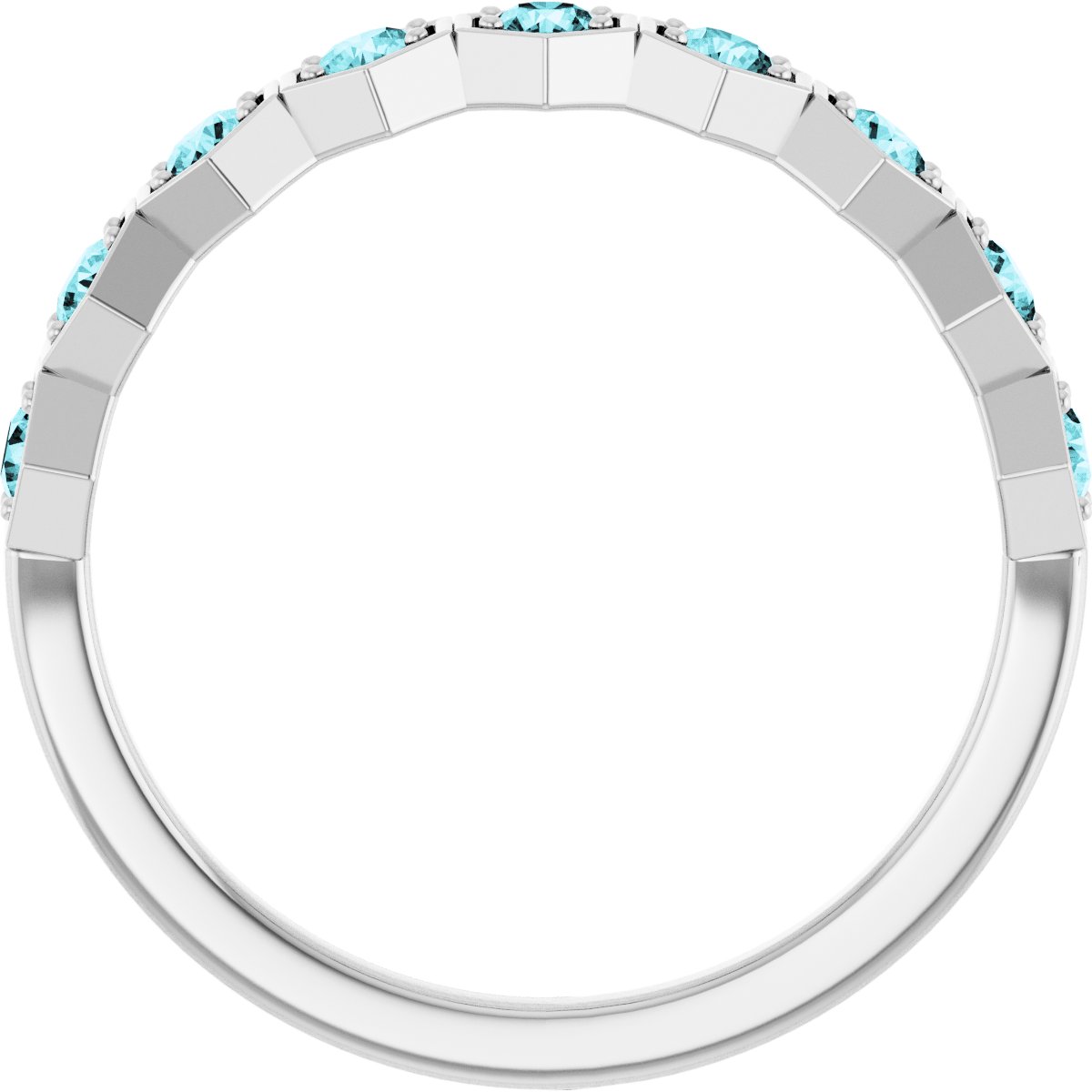 14K White Natural Blue Zircon Bezel-Set Bar Ring