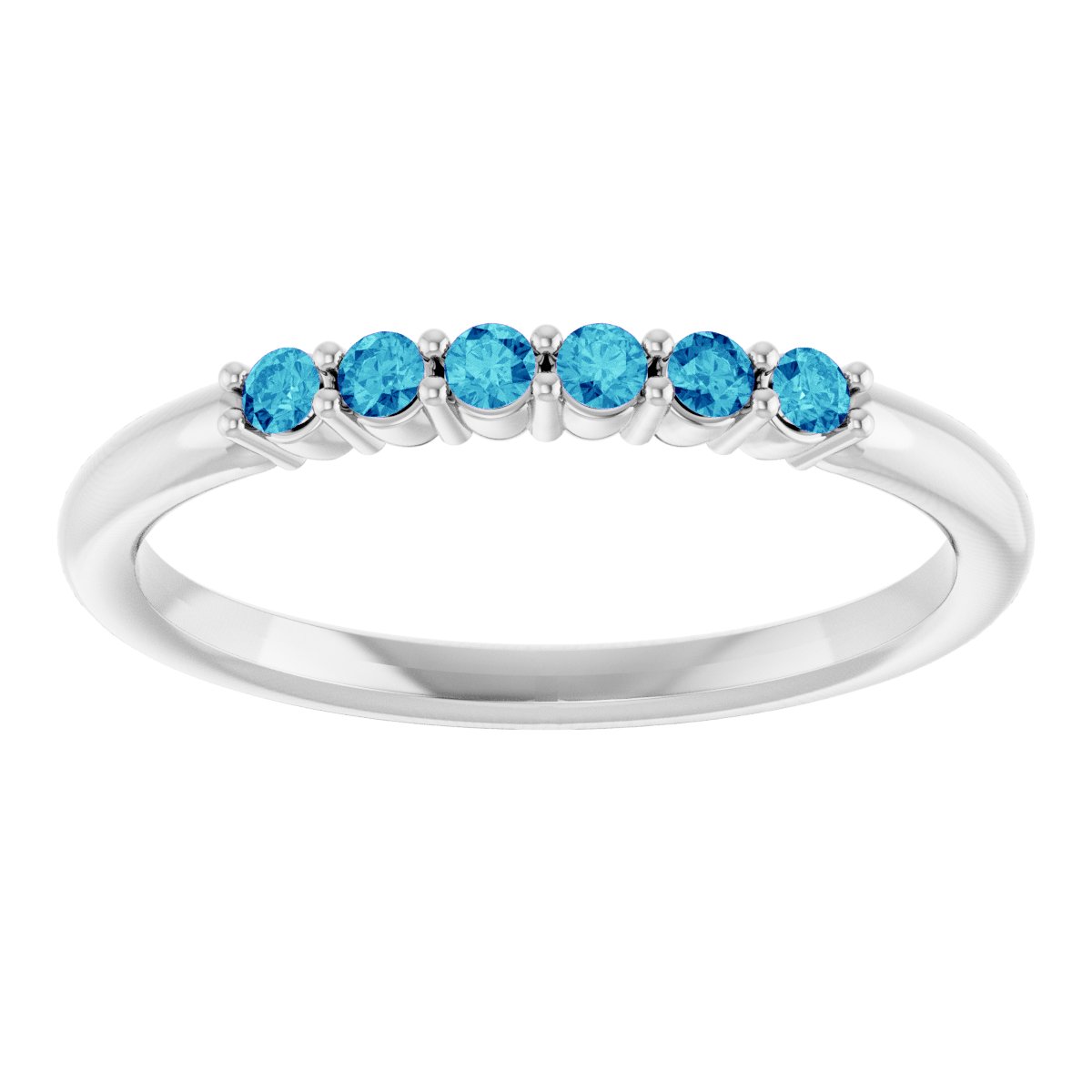 14K White Natural Blue Zircon & 1/6 CTW Natural Diamond Ring