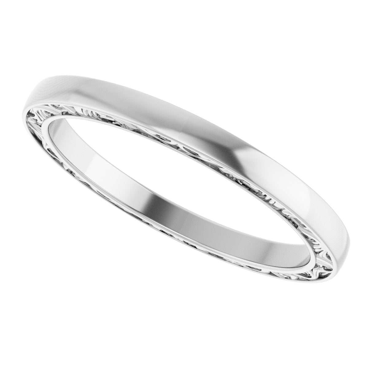 14K White 5 mm Milgrain Edge Comfort-Fit Half Round Band Size 7.5