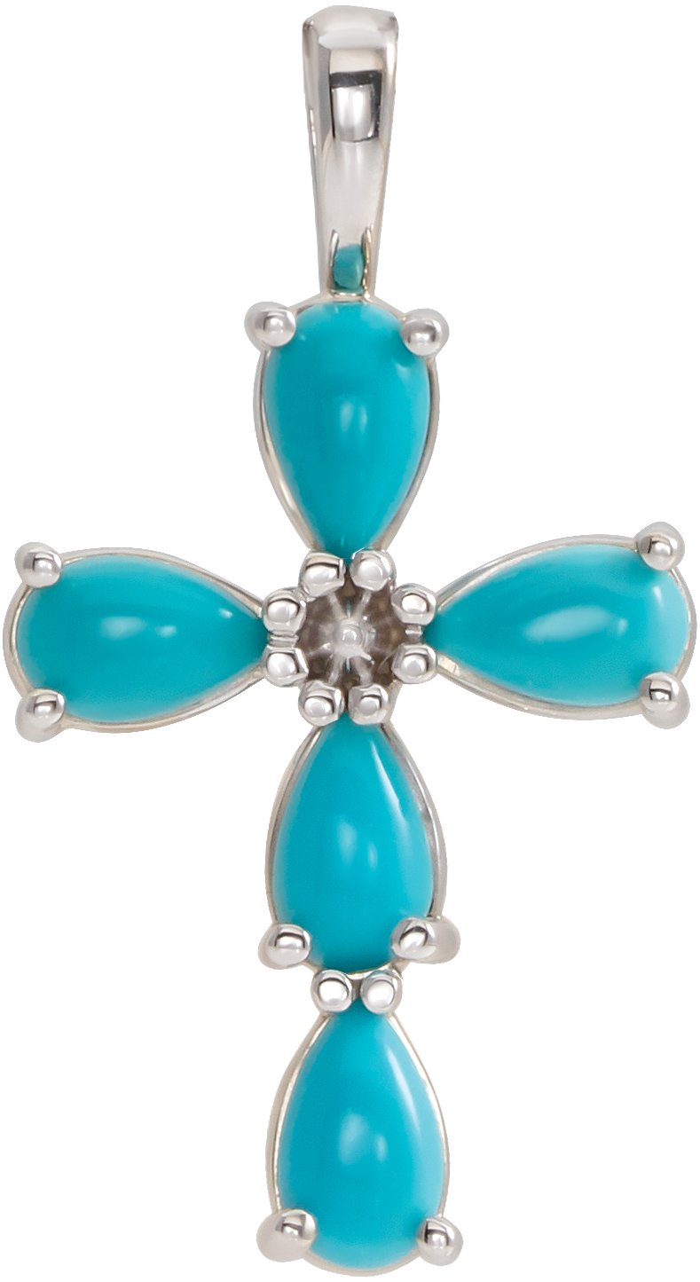 Sterling Silver Natural Turquoise Cabochon Cross Pendant
