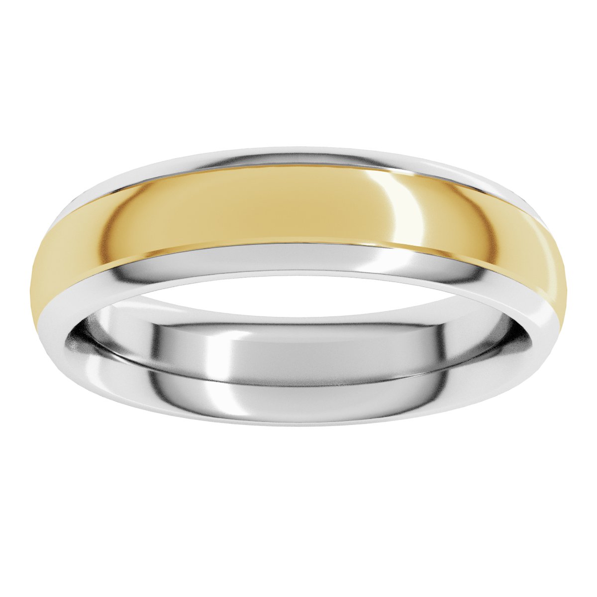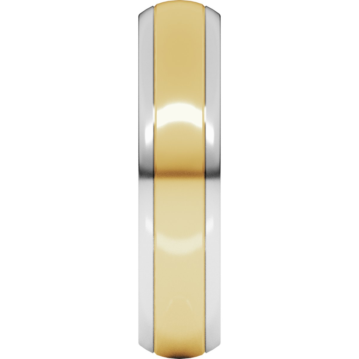 14K White/Yellow 5 mm Stepped Beveled-Edge Inlay Comfort-Fit Half Round Band Size 5