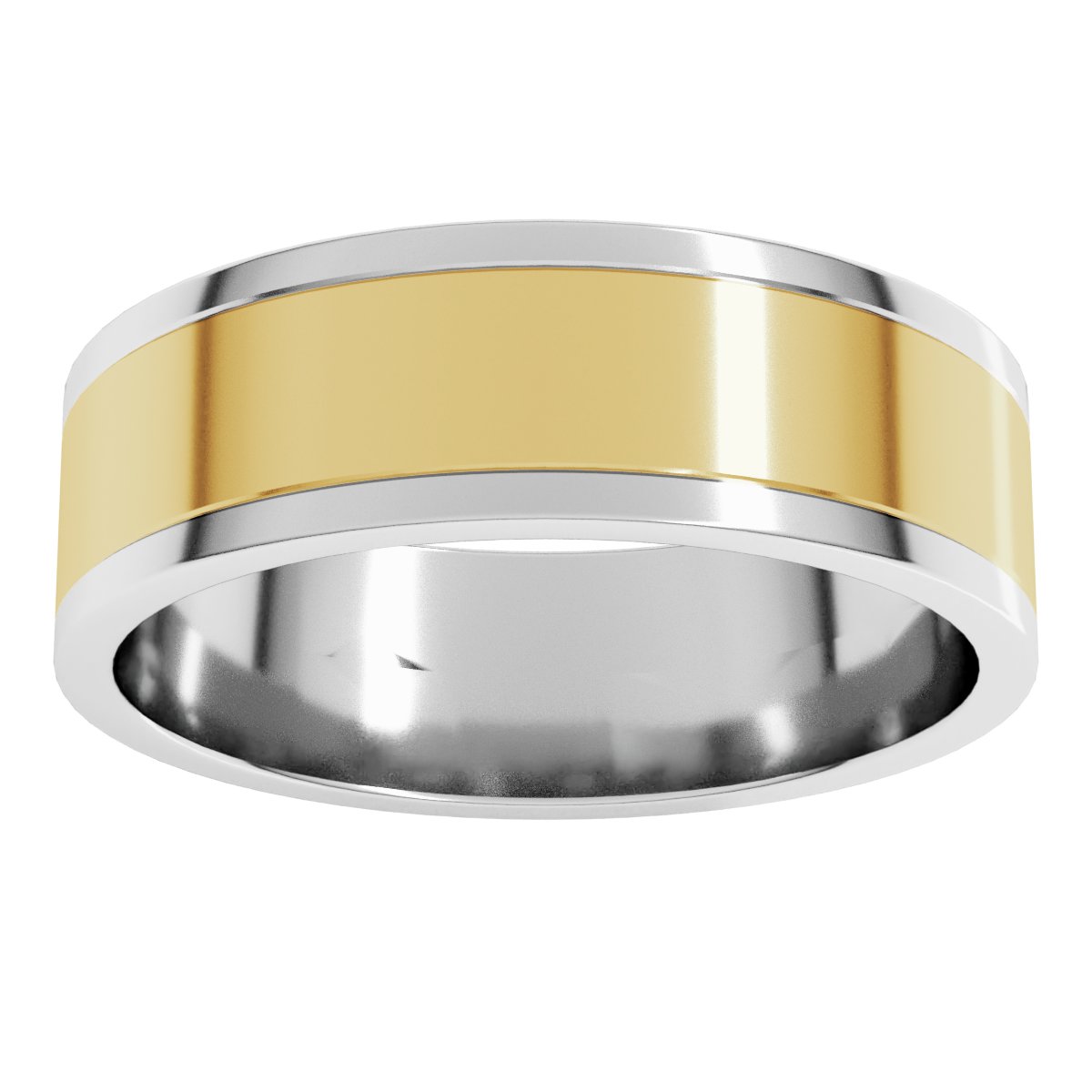 14K White/Yellow 6 mm Stepped-Edge Inlay Flat Band Size 8