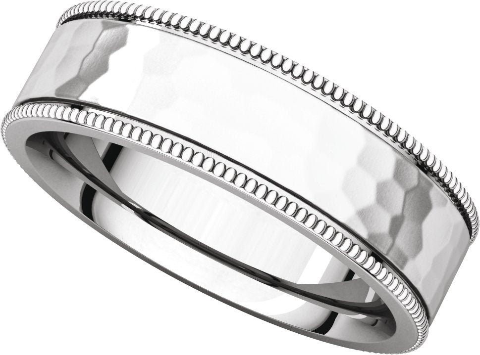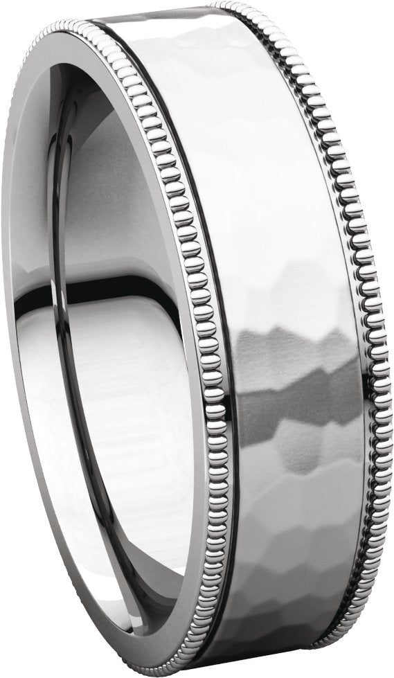 14K White 6 mm Milgrain Edge Comfort-Fit Flat Band Size 9
