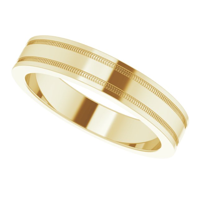14K Yellow 4 mm Milgrain Grooved Comfort-Fit Flat Band Size 7