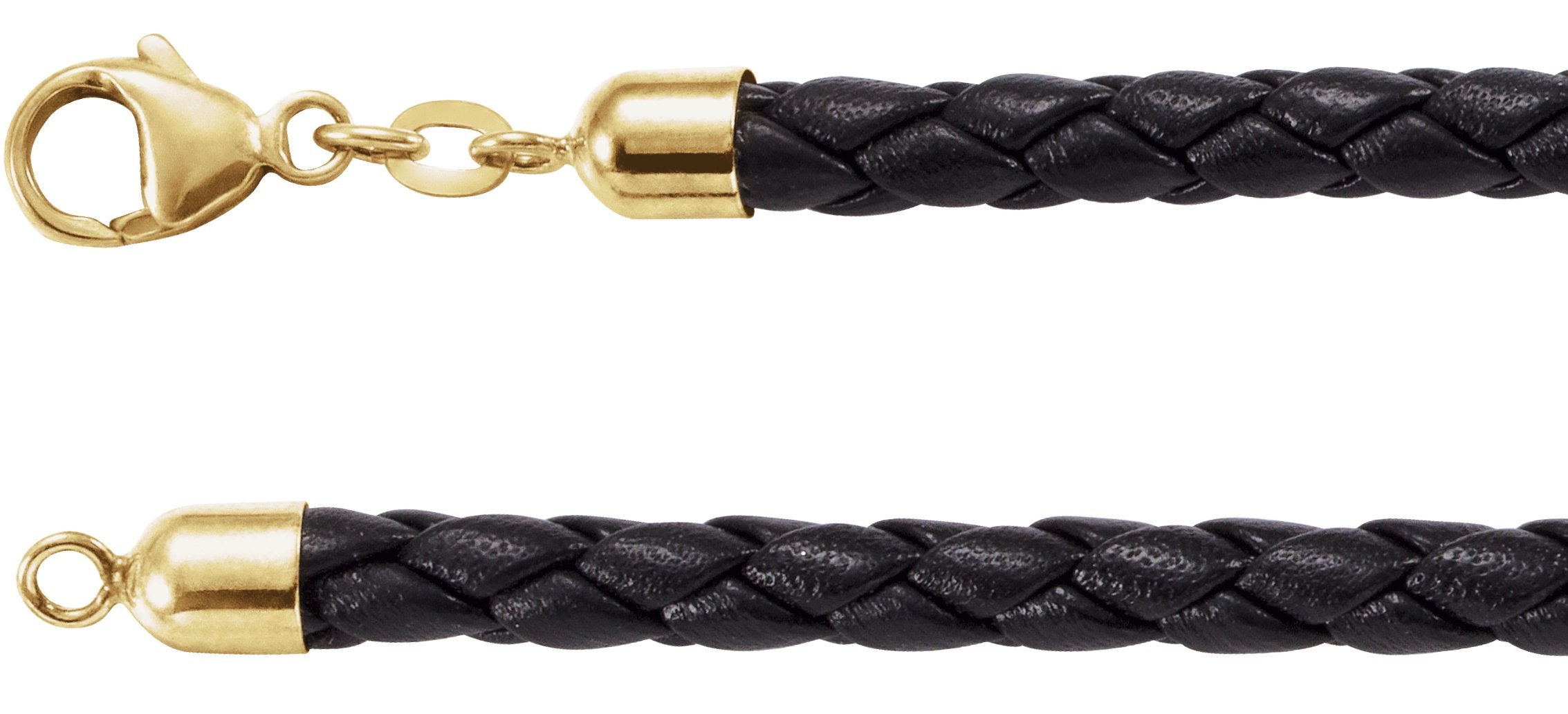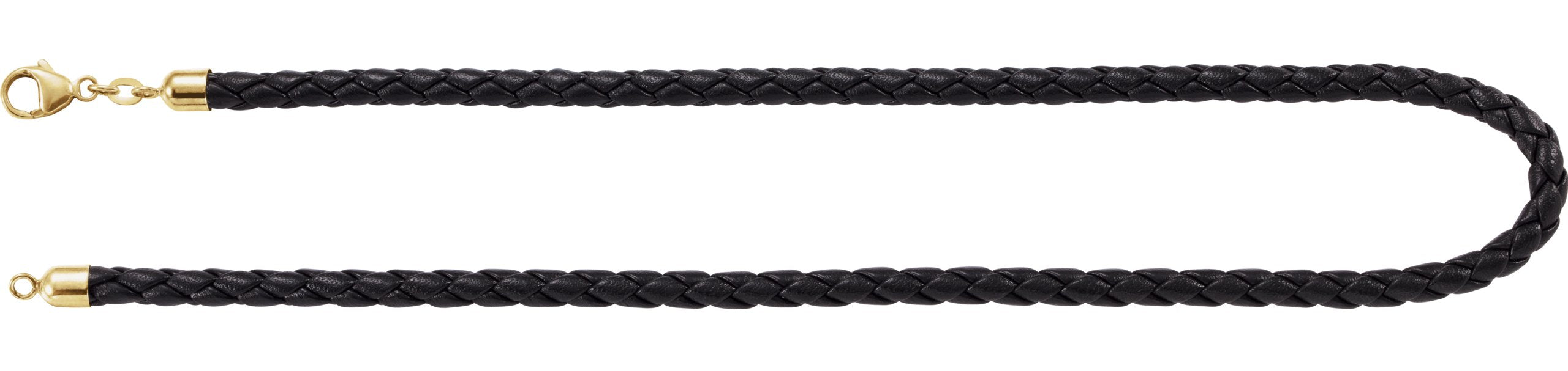 Black 5 mm Braided Leather 16" Cord with 14K Yellow Lobster Clasp