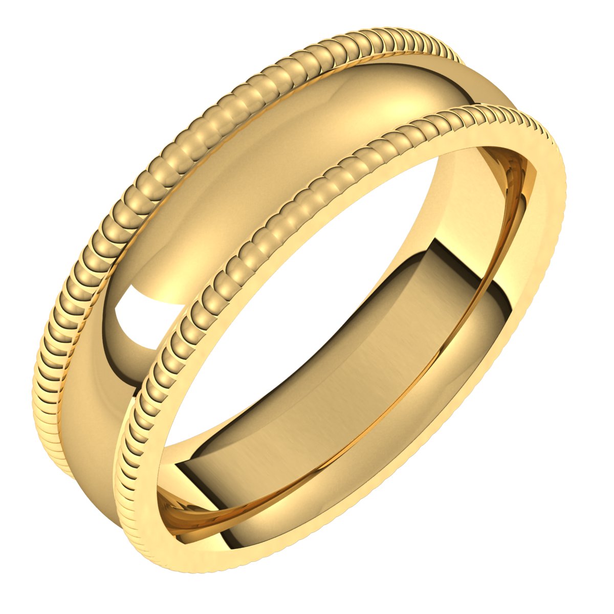 14K Yellow 6 mm Extra Large Milgrain Comfort-Fit Half Round Band Size 6.5