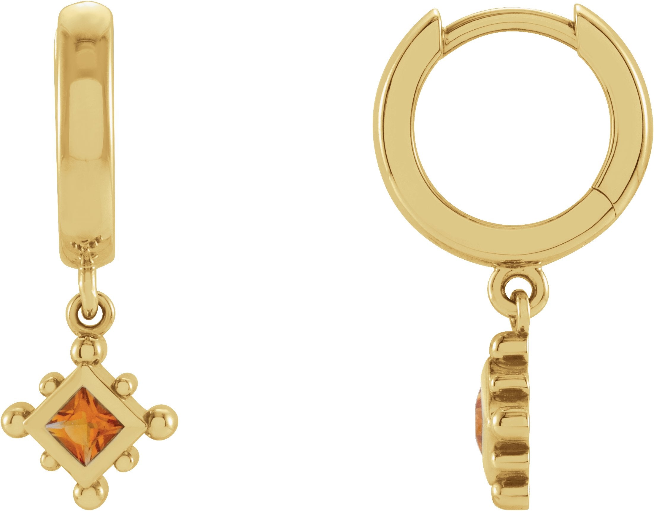 14K Rose Natural Blue Sapphire Beaded Bezel-Set Hoop Earrings