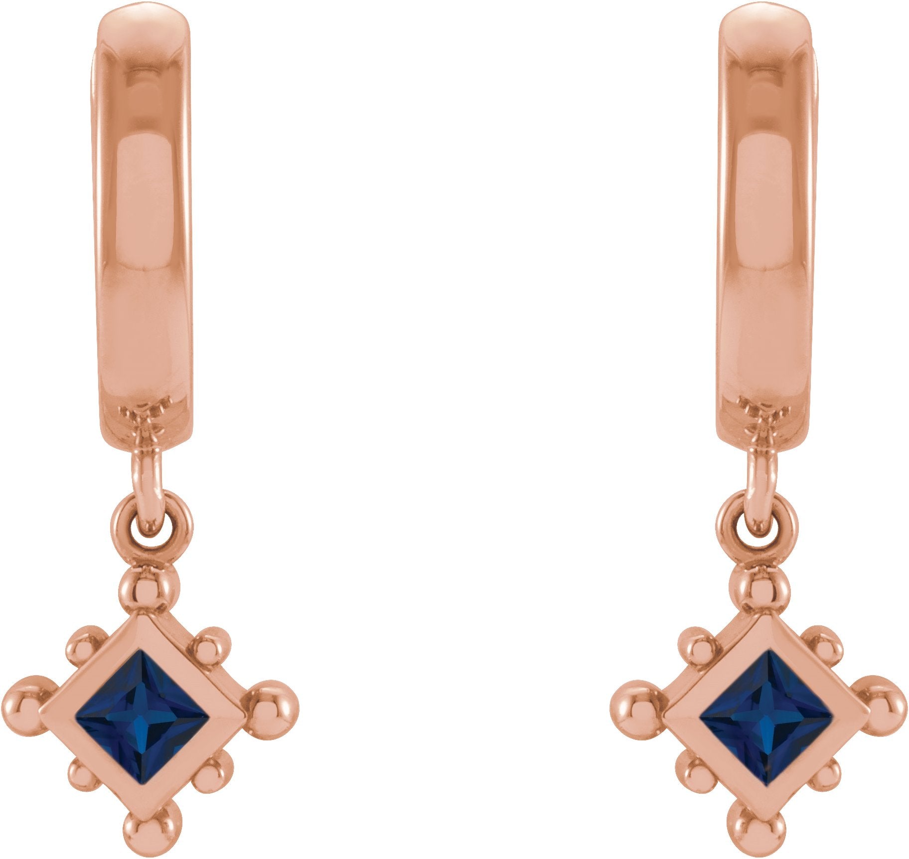 14K Rose Lab-Grown Blue Sapphire Beaded Bezel-Set Hoop Earrings