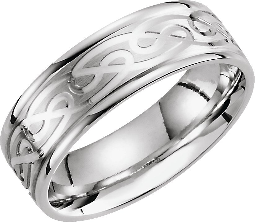 14K White 7 mm Celtic-Inspired Grooved Comfort-Fit Flat Band Size 14.5