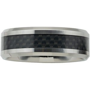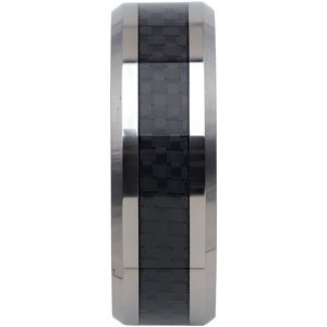 Tungsten 8 mm Beveled-Edge Carbon Fiber Inlay Comfort-Fit Band Size 11