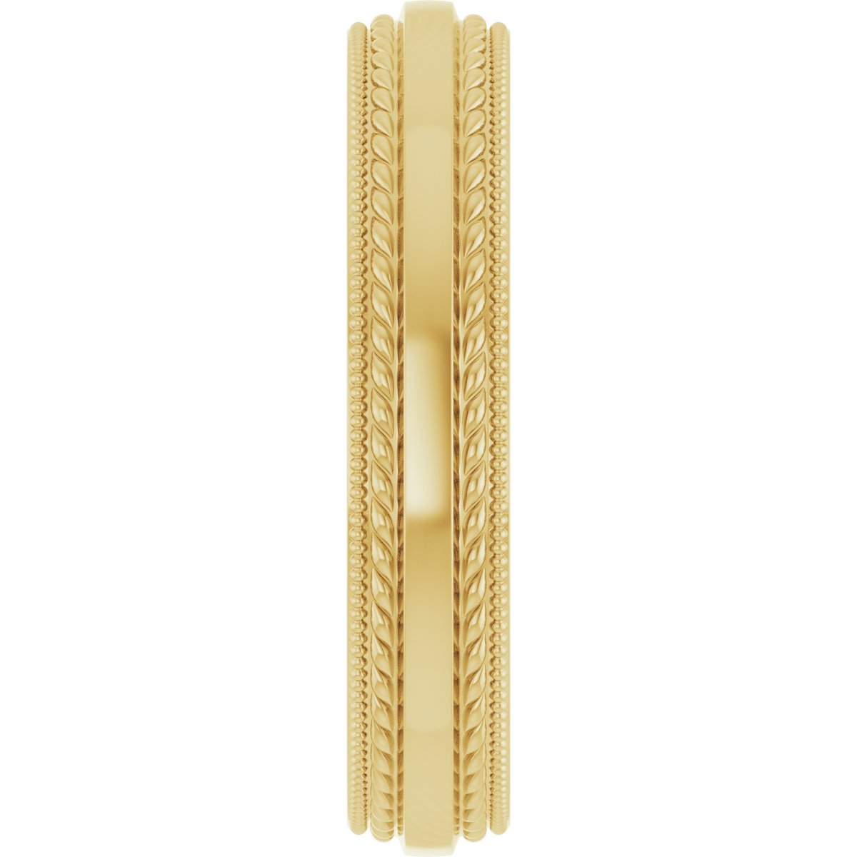 14K Yellow 5 mm Rope & Milgrain Stepped-Edge Comfort-Fit Half Round Band Size 9.5