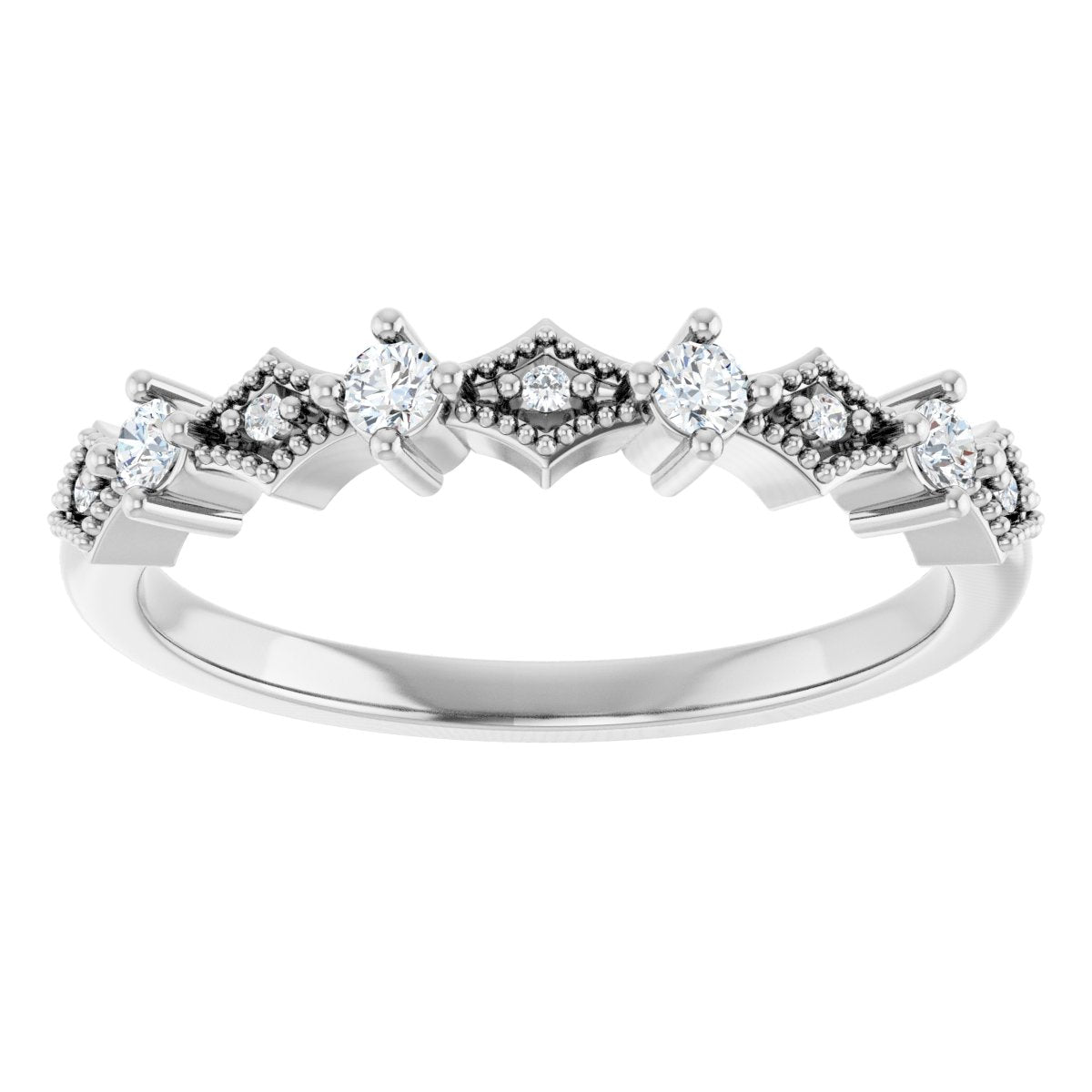 14K White 1/8 CTW Natural Diamond Milgrain Anniversary Band