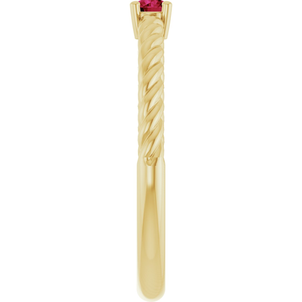 14K Yellow 3 mm Lab-Grown Ruby Solitaire Rope Ring
