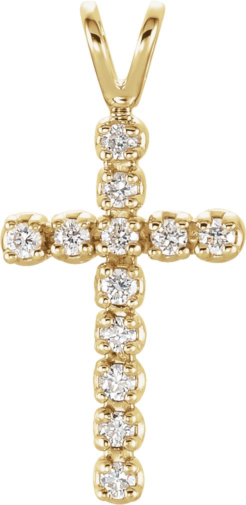 14K White 1/8 CTW Natural Diamond Cross Pendant