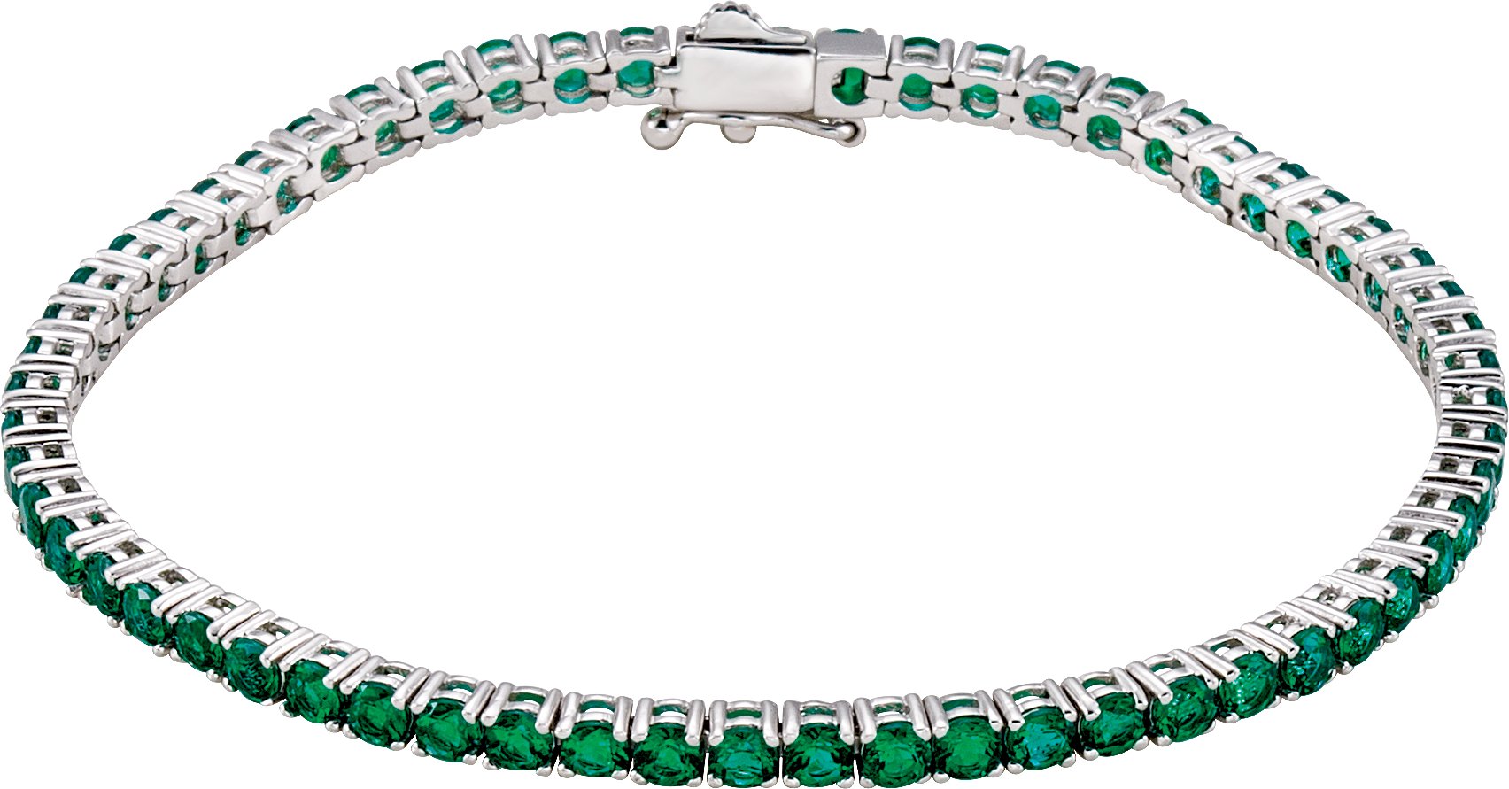 14K White Lab-Grown Emerald Line 7.25" Bracelet