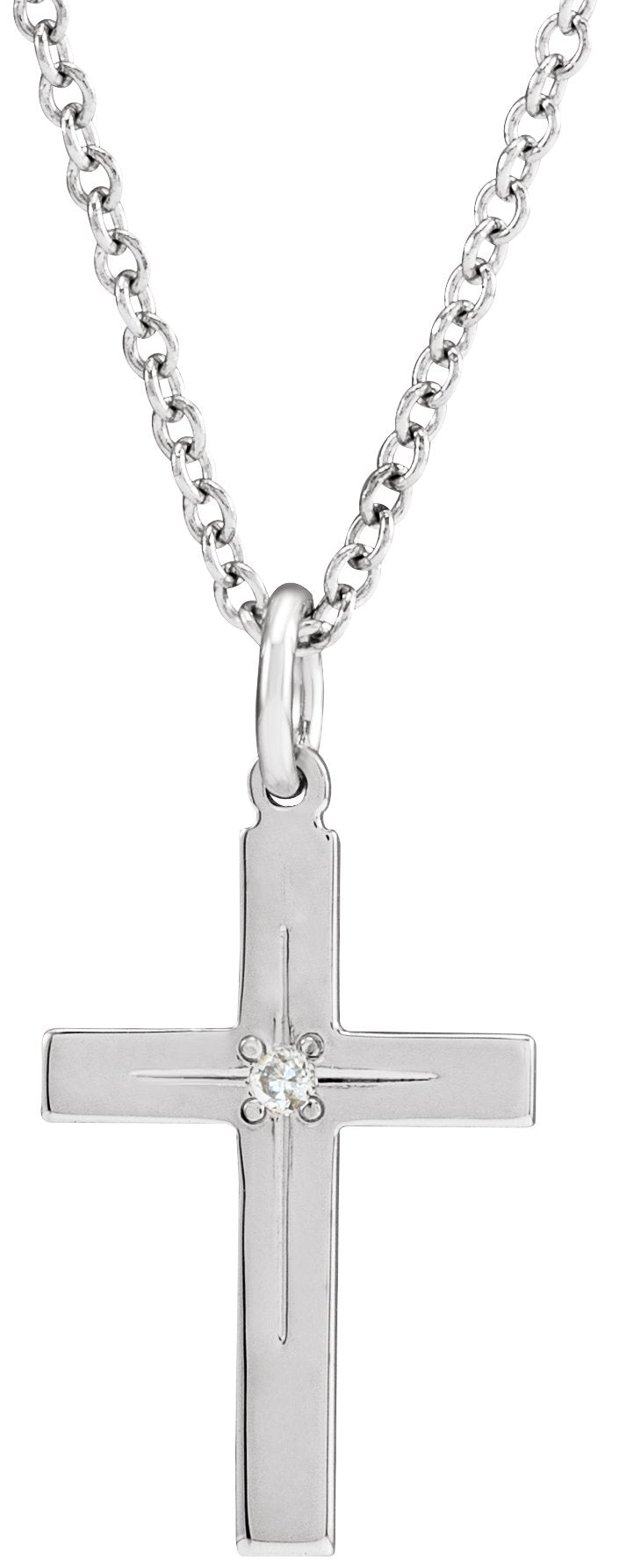 14K Yellow .01 CT Natural Diamond Cross 18" Necklace