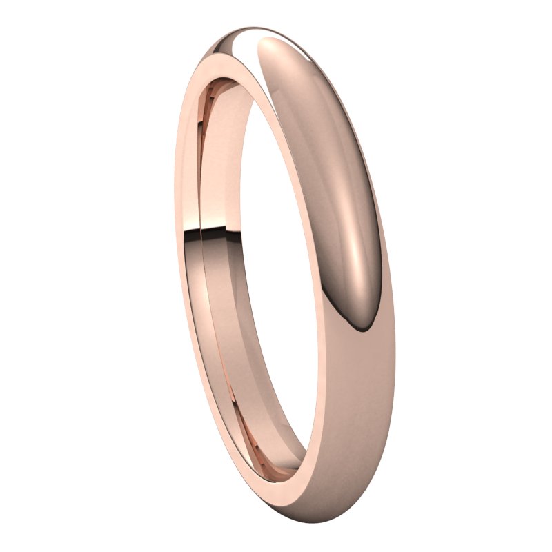 14K Rose 3 mm Comfort-Fit Half Round Band Size 10