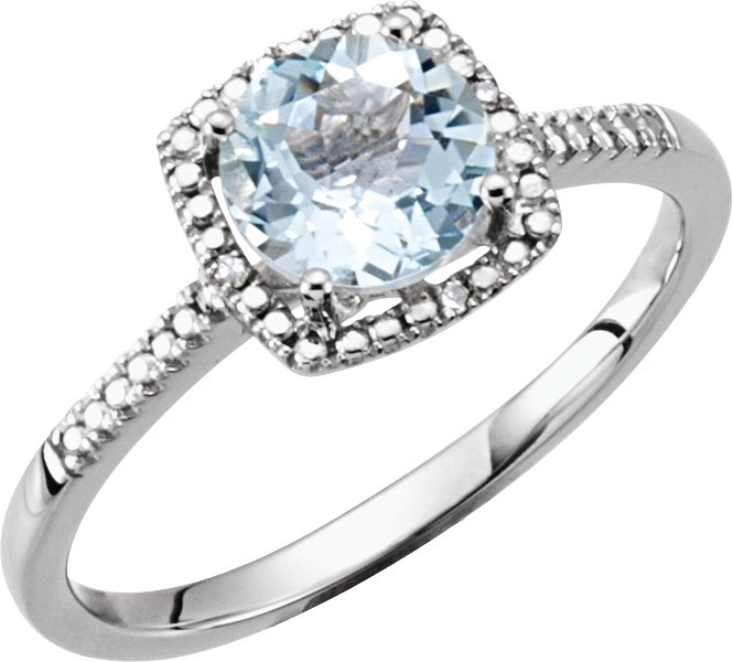 Sterling Silver Natural Aquamarine & .01 CTW Natural Diamond Ring