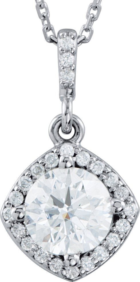 14K White 5/8 CTW Natural Diamond Halo-Style 18" Necklace